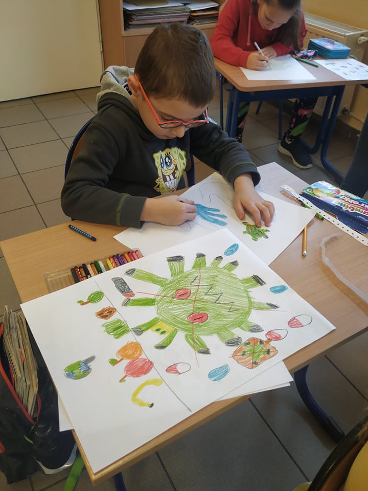 Znaczącą rolę w higienie osobistej odgrywa prawidłowe mycie rąk. Głównym celem programu było osiągniecie poprawy zachowań higienicznych wśród najmłodszych uczniów szkoły w obszarze profilaktyki. Celem szczegółowym programu było wzbogacenie wiedzy dzieci z dziedziny zdrowia, wykształcenie postaw prozdrowotnych w kontekście profilaktyki chorób zakaźnych, przyswojenie i wdrożenie prawidłowych przyzwyczajeń i nawyków higieniczno - zdrowotnych. Zakres tematyczny programu to: higiena osobista, higiena rąk, koronawirus i grypa. Program zawierał ciekawe, kolorowe prezentacje multimedialne, które zainteresowały dzieci, karty pracy do samodzielnego wykonania. Książeczka z możliwością kolorowania obrazków, czytania, nauki wierszyków, które utrwalają wiedzę. To sposób na spędzanie przez dzieci wolnego czasu np. podczas ferii, ale również wspólnej zabawy z rodzicami. Jest to także propozycja pomocy dydaktycznej dla nauczycieli przedszkoli i najmłodszych klas szkół podstawowych. Uczniowie najmłodszych klas miło spędzili czas, wykazując się dużą wiedzą, zaangażowaniem oraz chętnie brali udział w zajęciach.