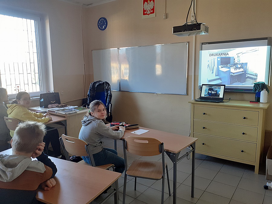 Uczniowie dowiedzieli się o etapach powstawania książki i osobach pracujących nad książką zanim trafi ona do rąk czytelnika. Zapoznali się ze znaczeniem słów: autor, redaktor, wydawnictwo, ilustrator, grafik. Z wielkim zainteresowaniem oglądali film edukacyjny przedstawiający powstanie książki. Na koniec lekcji, chętnie opowiadali o swoich książkach, które przeczytali w ostatnim czasie.