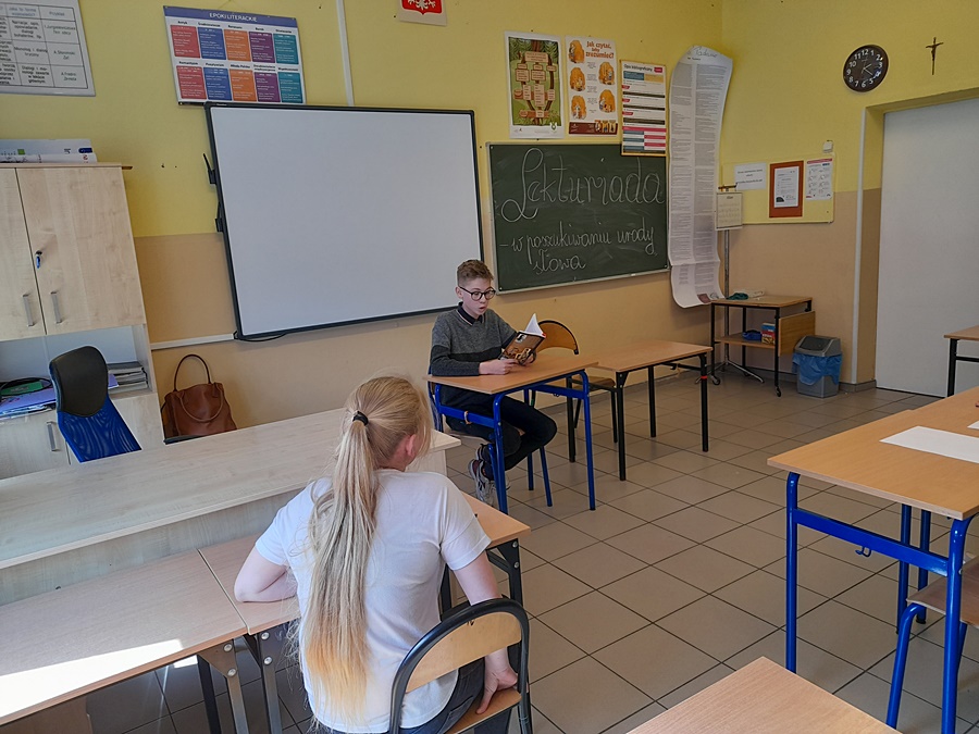 Dnia 21.04.2022 r. o godzinie 13:25 w Szkole Podstawowej w Wysokiej Kamieńskiej odbył się II etap konkursu szkolnego ,,Lekturiada – w poszukiwaniu urody słowa”, którego celem było wyłonienie najlepszego lektora wśród uczniów. Uczniowie czytali fragmenty lektury wybranej w drodze głosowania. Wzorem wyboru na ,,Narodowe Czytanie” wygrała książka ,,Kamienie na szaniec” A. Kamińskiego. Jury w składzie Pani Beaty Germanowicz, Pani Marzeny Gawliczek i Pani Niny Szabat przeprowadziło konkurs, wybrały najciekawszą interpretację. Uczniowie szukali w lekturach tego, co jeszcze nie odkryte, urody słowa i piękna języka.