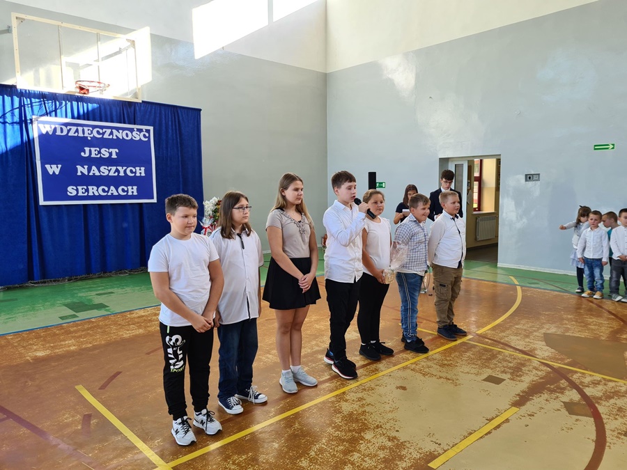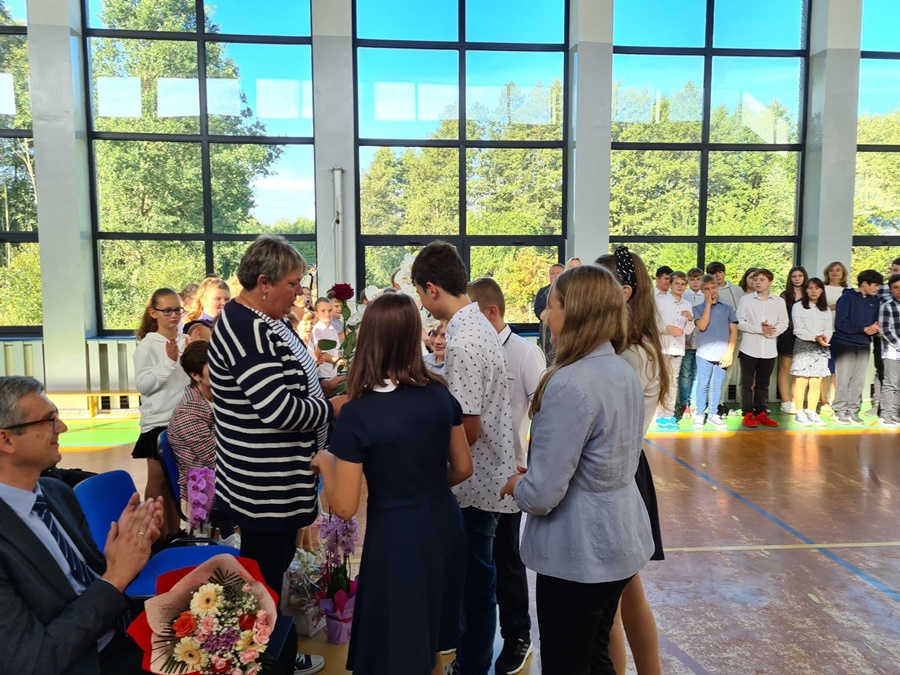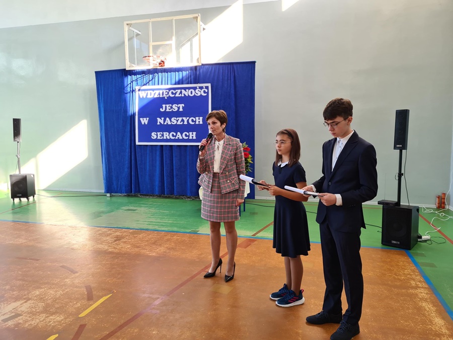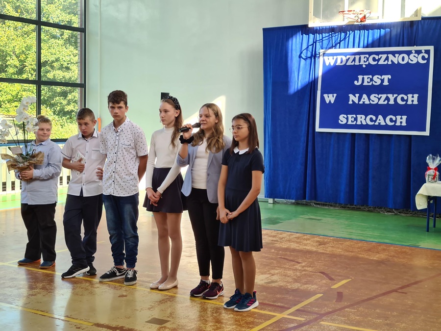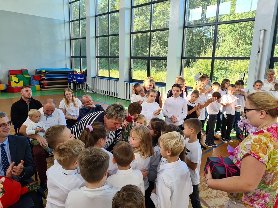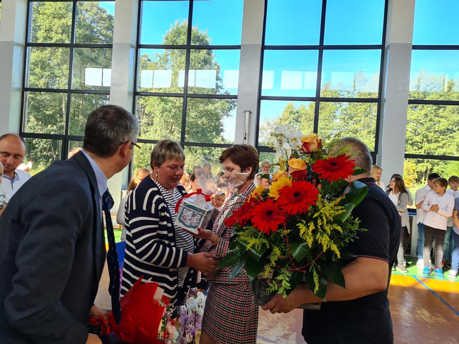 Dnia 26 września 2022 roku w naszej szkole odbyła się niecodzienna i wzruszająca uroczystość związana z odejściem na emeryturę Pani Renaty Rutkowskiej. Panią Renię znają wszyscy doskonale. Przepracowała łącznie trzydzieści dziewięć lat, zaś w szkołach trzydzieści sześć. Sumiennie i z wielkim zaangażowaniem wykonywała swoje zawodowe obowiązki w Szkole Podstawowej w Wysokiej Kamieńskiej i w Zespole Szkół Publicznych w Golczewie. Dbała o porządek i bezpieczeństwo w swoich placówkach, wspierała czynem i słowem uczniów, a także nauczycieli i pracowników szkoły. Każdy mógł liczyć na jej zainteresowanie, dobre słowo i wsparcie w trudnej sytuacji. Miejsce pracy ogarniała zawsze swoim praktycznym, gospodarskim spojrzeniem i podejmowała działania, które przynosiły korzyść i dobrze służyły całej szkolnej społeczności. Dała się poznać jako osoba skromna, pracowita, spokojna. Mimo życiowych przeciwności, których los jej nie szczędził, starała się wykonywać swoje obowiązki z uśmiechem, a innym okazywać cierpliwość i wyrozumiałość. Nigdy nie odwracała wzroku od ludzkich problemów i pamiętała o wszystkich.