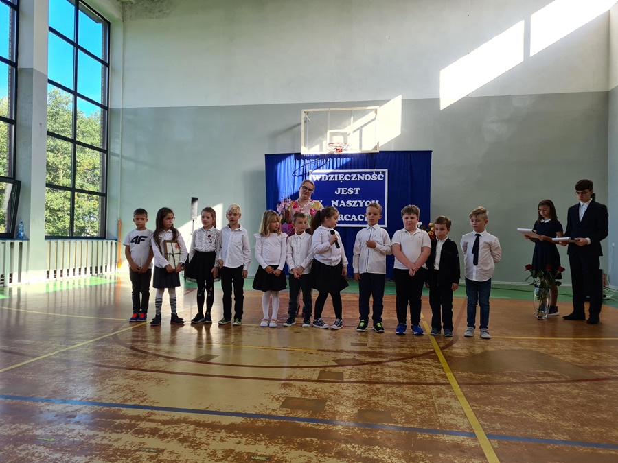 Za wieloletni trud, zaangażowanie w pracę, bycie przyjacielem dzieci i dorosłych Pani Renacie Rutkowskiej z wielkim wzruszeniem i wdzięcznością dziękowali wszyscy uczniowie, nauczyciele, pracownicy szkoły oraz Zastępca Burmistrza Golczewa pan Grzegorz Chłopek, który oprócz życzeń i kwiatów wręczył bohaterce uroczystości List Gratulacyjny. Pani Dyrektor Beata Pastryk podziękowała wszystkim za udział w przepojonej serdeczną atmosferą uroczystości. Z wyraźnym wzruszeniem kierowała do Pani Reni słowa podziękowania i uznania, życzenia zdrowia i odpoczynku na zasłużonej emeryturze. Uczniowie, którzy jak najlepiej chcieli wyrazić swą wdzięczność, dodali do życzeń drobne, pamiątkowe, własnoręcznie przygotowane upominki, które będą przypominały Pani Reni lata pracy. Wszyscy, którzy mieli przyjemność z Nią pracować twierdzą zgodnie, że szkoła bez Niej nie będzie już taka sama i trudno będzie wypełnić miejsce po kimś, kto niewątpliwie przez całe lata był Dobrym Duchem tego miejsca i pozytywnie zapisał się w pamięci wielu osób.