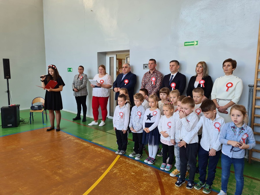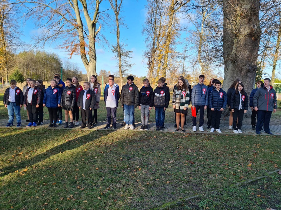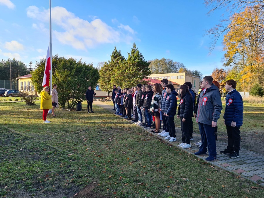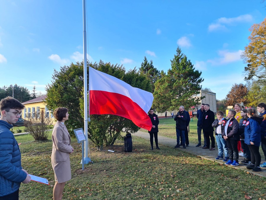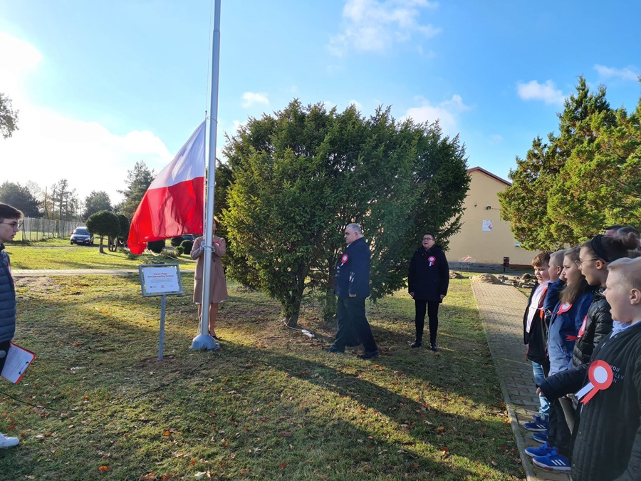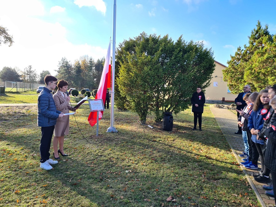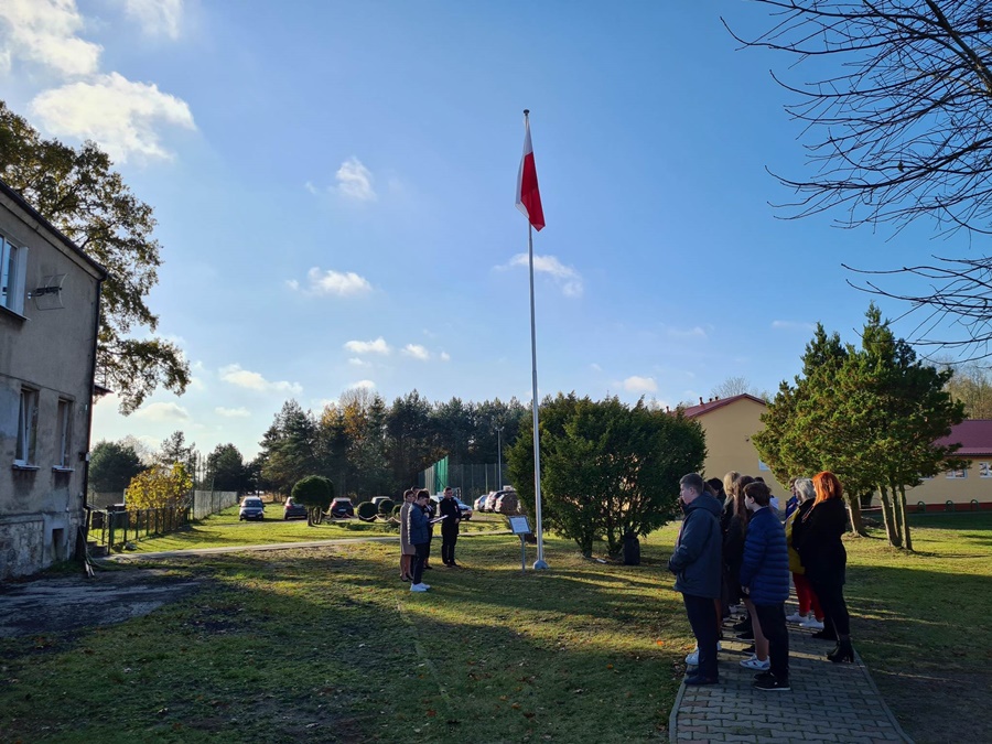 W uroczystości podniesienia na maszt flagi uczestniczyli: Dyrektor szkoły – Pani Beata Pastryk, Burmistrz Golczewa – Pan Maciej Zieliński, Przewodniczący Rady Miejskiej – Pan Tomasz Caban, Sołtys Wysokiej Kamieńskiej – Pan Robert Stefański oraz Przewodnicząca Rady Rodziców – Pani Anna Klimczak. Elementy naszej kultury narodowej jak godło, flaga, hymn, ale również język polski i polska kultura stanowią o naszej tożsamości i musimy je pielęgnować. Uczniowie oraz przedszkolaki z naszej szkoły zawsze pamiętają o wielkim patriotycznym święcie, jakim dla każdego mieszkańca Polski jest Narodowe Święto Niepodległości obchodzone 11 listopada. W klasach młodszych uczniowie słuchali pieśni patriotycznych, poznawali sylwetki wielkich Polaków zasłużonych w walce i pracy na rzecz niepodległej Polski oraz legendy związane z początkami naszej państwowości, oglądali filmy o tematyce patriotycznej rekomendowane przez Instytut Pamięci Narodowej. Rozmawiano również na temat znaczenia słowa Ojczyzna. Dzieci zainteresowała szczególnie postać Marszałka Józefa Piłsudskiego. Uczniowie wraz z wychowawcami przygotowywali biało - czerwone kotyliony. Przy tej okazji podczas uroczystego apelu zastanawiano się między innymi, co znaczy być patriotą w dzisiejszych czasach.