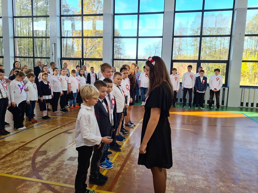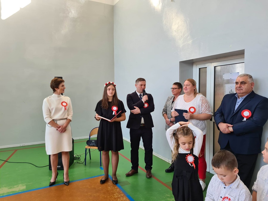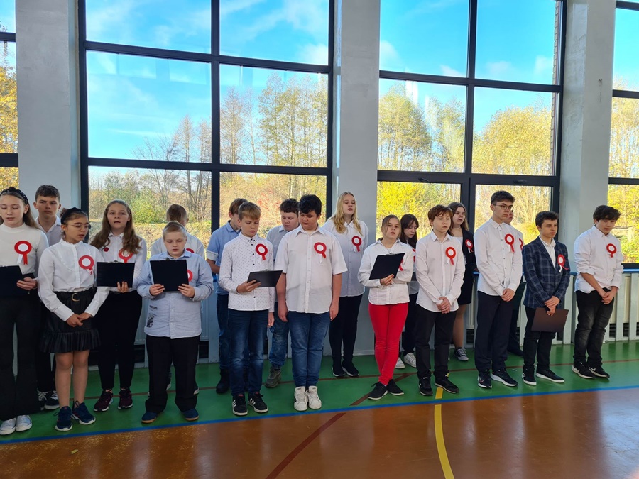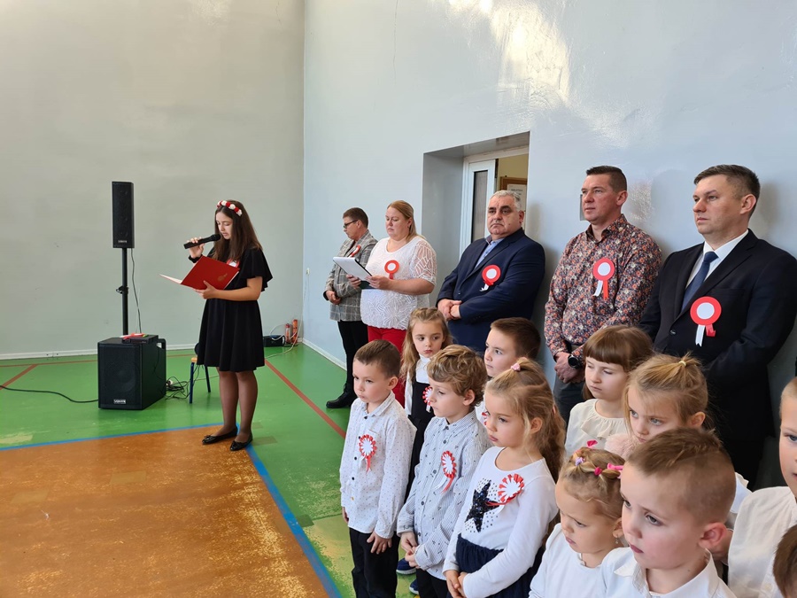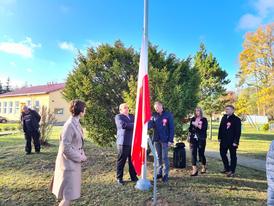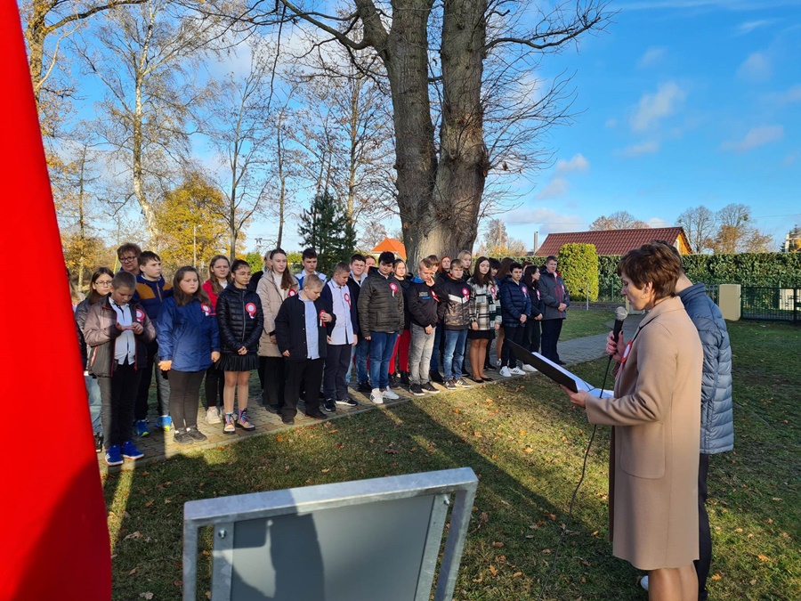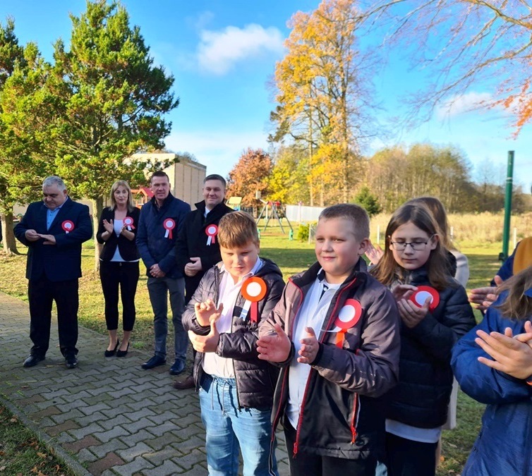 W uroczystości podniesienia na maszt flagi uczestniczyli: Dyrektor szkoły – Pani Beata Pastryk, Burmistrz Golczewa – Pan Maciej Zieliński, Przewodniczący Rady Miejskiej – Pan Tomasz Caban, Sołtys Wysokiej Kamieńskiej – Pan Robert Stefański oraz Przewodnicząca Rady Rodziców – Pani Anna Klimczak. Elementy naszej kultury narodowej jak godło, flaga, hymn, ale również język polski i polska kultura stanowią o naszej tożsamości i musimy je pielęgnować. Uczniowie oraz przedszkolaki z naszej szkoły zawsze pamiętają o wielkim patriotycznym święcie, jakim dla każdego mieszkańca Polski jest Narodowe Święto Niepodległości obchodzone 11 listopada. W klasach młodszych uczniowie słuchali pieśni patriotycznych, poznawali sylwetki wielkich Polaków zasłużonych w walce i pracy na rzecz niepodległej Polski oraz legendy związane z początkami naszej państwowości, oglądali filmy o tematyce patriotycznej rekomendowane przez Instytut Pamięci Narodowej. Rozmawiano również na temat znaczenia słowa Ojczyzna. Dzieci zainteresowała szczególnie postać Marszałka Józefa Piłsudskiego. Uczniowie wraz z wychowawcami przygotowywali biało - czerwone kotyliony. Przy tej okazji podczas uroczystego apelu zastanawiano się między innymi, co znaczy być patriotą w dzisiejszych czasach.