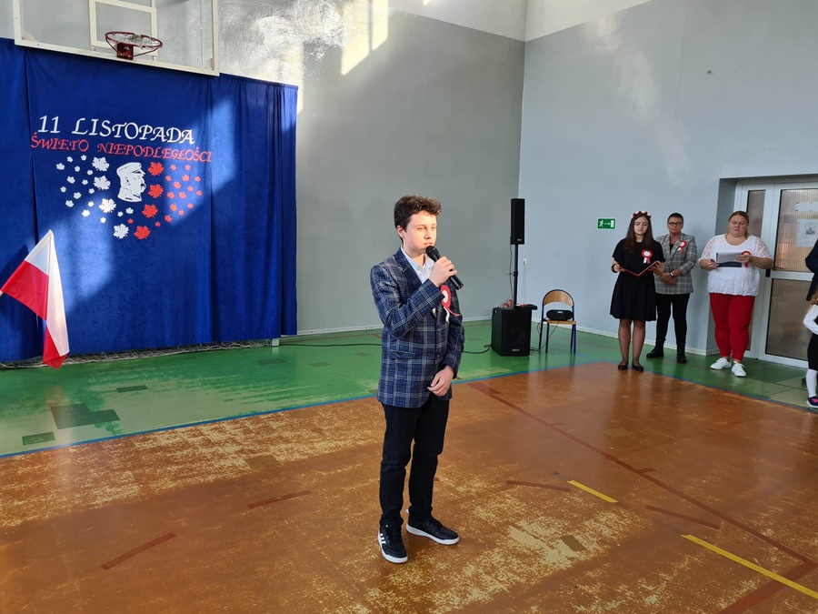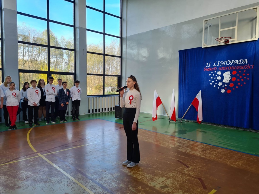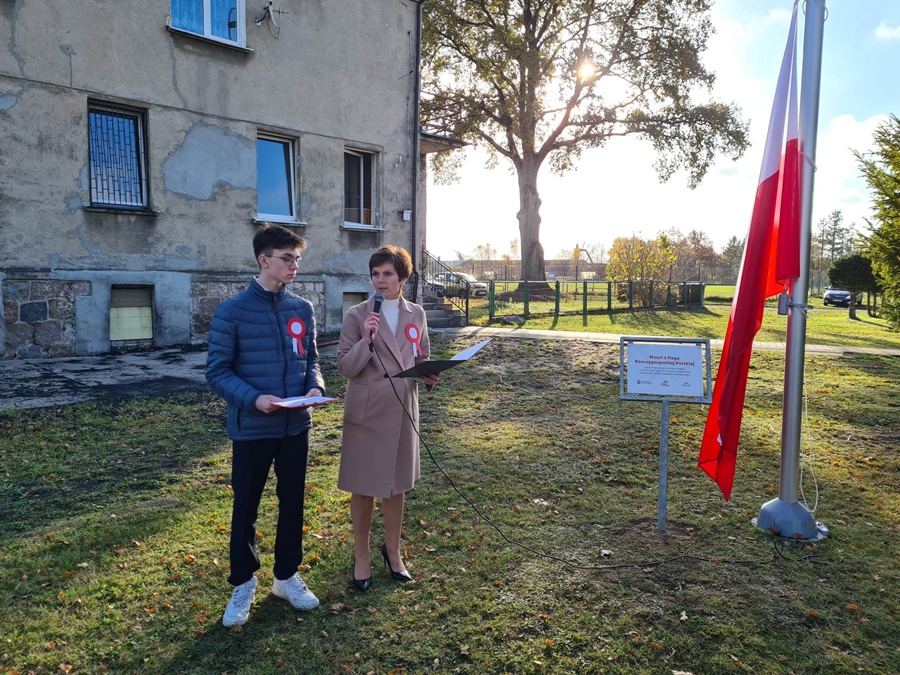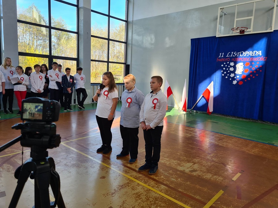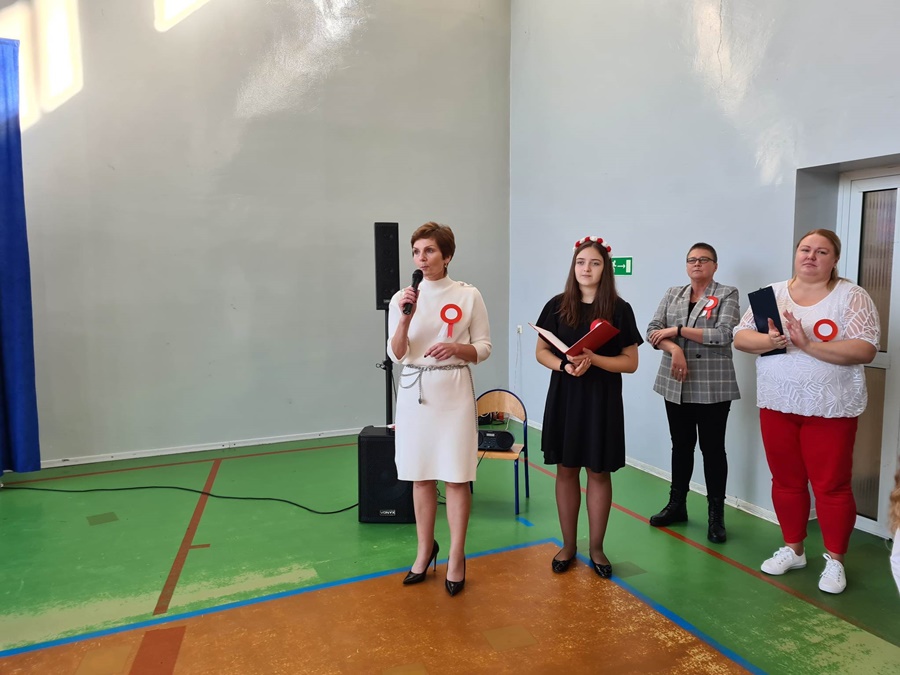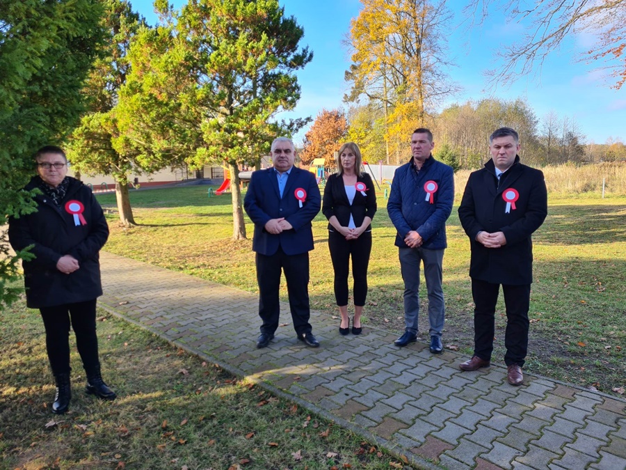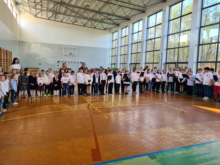 W uroczystości podniesienia na maszt flagi uczestniczyli: Dyrektor szkoły – Pani Beata Pastryk, Burmistrz Golczewa – Pan Maciej Zieliński, Przewodniczący Rady Miejskiej – Pan Tomasz Caban, Sołtys Wysokiej Kamieńskiej – Pan Robert Stefański oraz Przewodnicząca Rady Rodziców – Pani Anna Klimczak. Elementy naszej kultury narodowej jak godło, flaga, hymn, ale również język polski i polska kultura stanowią o naszej tożsamości i musimy je pielęgnować. Uczniowie oraz przedszkolaki z naszej szkoły zawsze pamiętają o wielkim patriotycznym święcie, jakim dla każdego mieszkańca Polski jest Narodowe Święto Niepodległości obchodzone 11 listopada. W klasach młodszych uczniowie słuchali pieśni patriotycznych, poznawali sylwetki wielkich Polaków zasłużonych w walce i pracy na rzecz niepodległej Polski oraz legendy związane z początkami naszej państwowości, oglądali filmy o tematyce patriotycznej rekomendowane przez Instytut Pamięci Narodowej. Rozmawiano również na temat znaczenia słowa Ojczyzna. Dzieci zainteresowała szczególnie postać Marszałka Józefa Piłsudskiego. Uczniowie wraz z wychowawcami przygotowywali biało - czerwone kotyliony. Przy tej okazji podczas uroczystego apelu zastanawiano się między innymi, co znaczy być patriotą w dzisiejszych czasach.