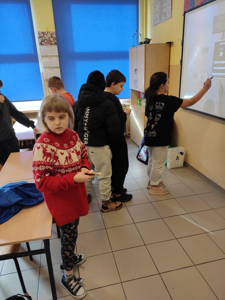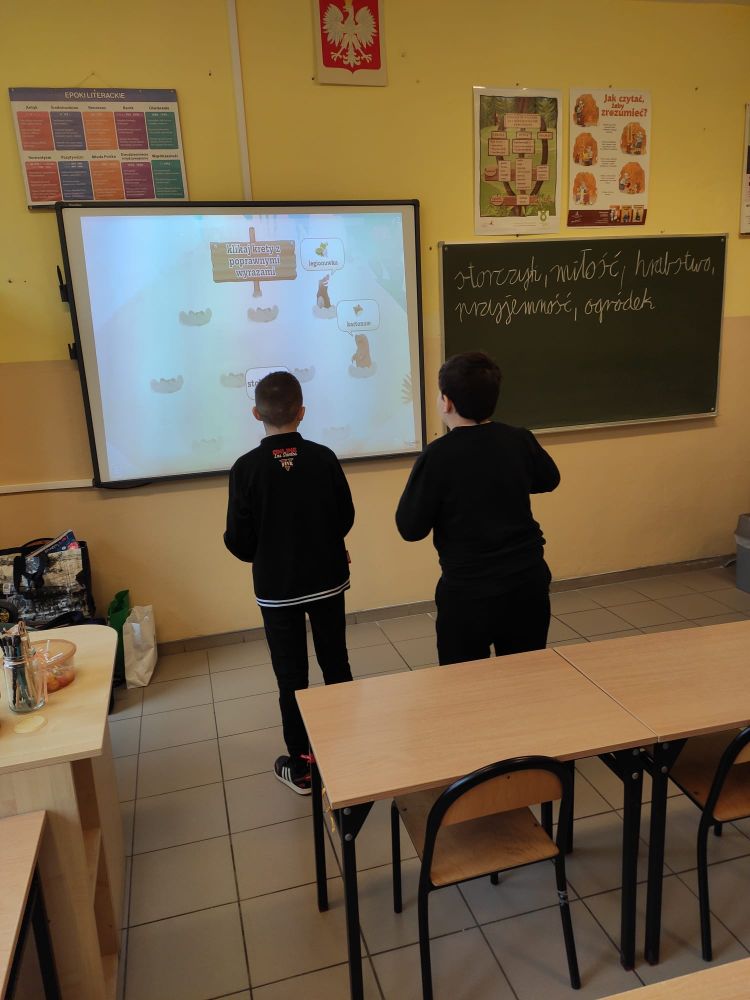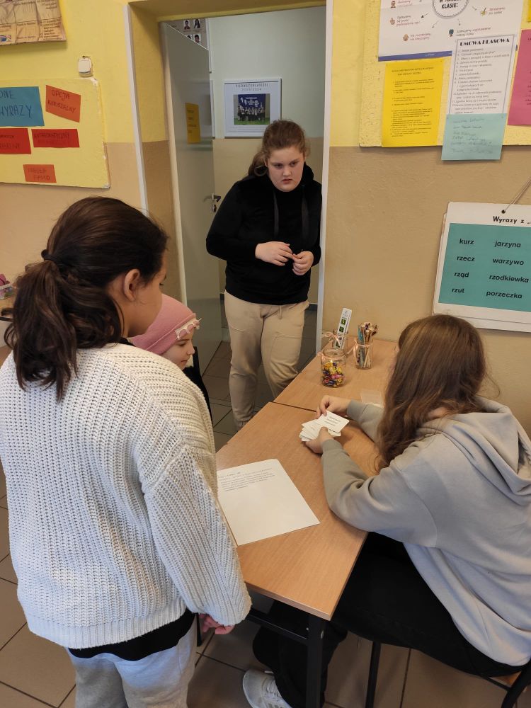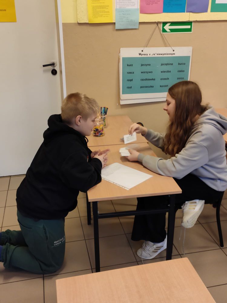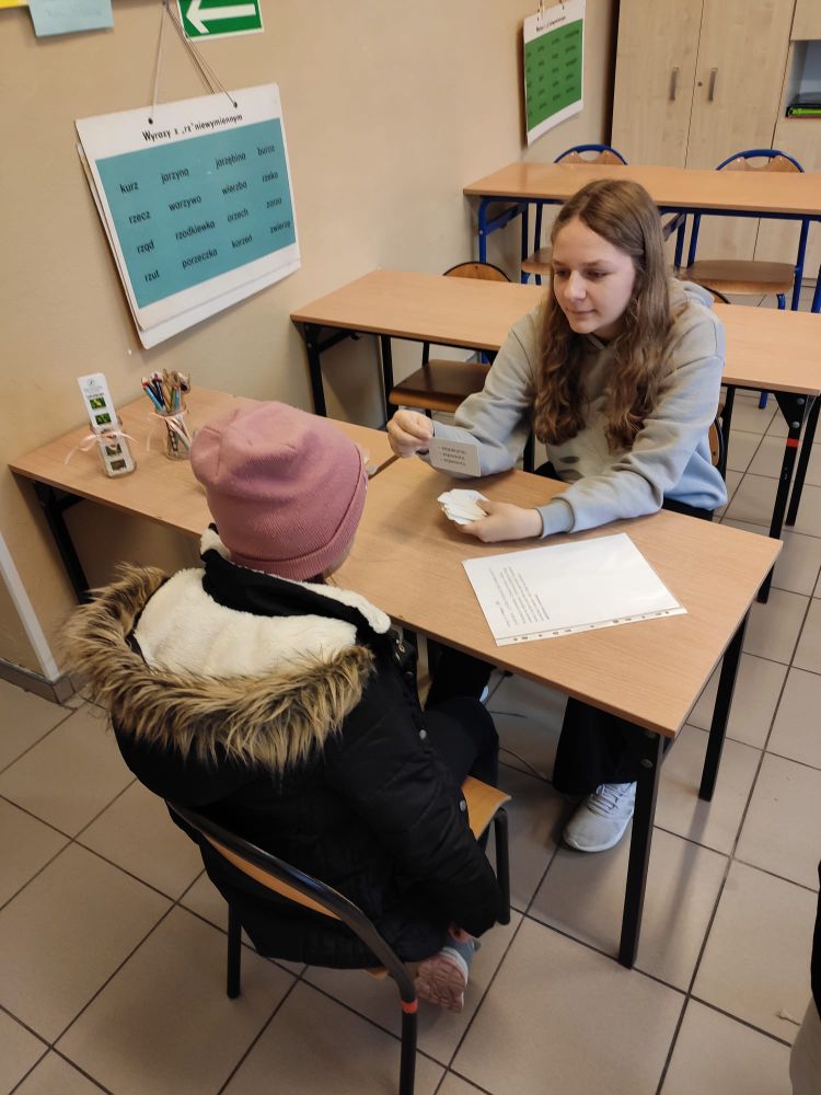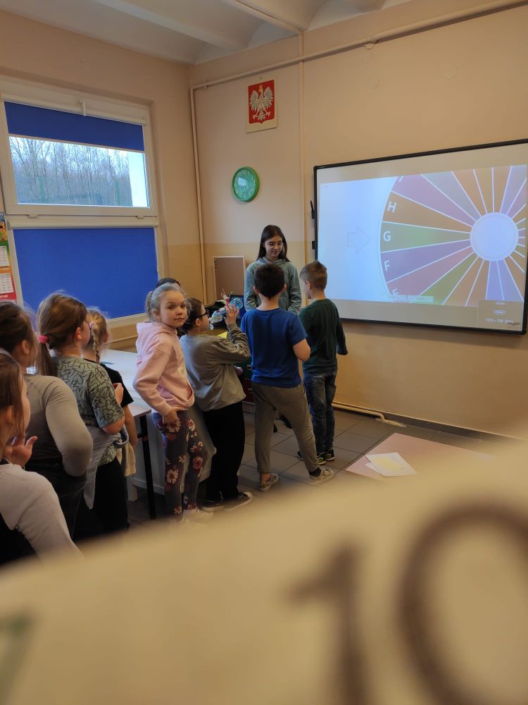 W naszej szkole z tej okazji świętowaliśmy Dzień Języka Polskiego. Na lekcjach uczniowie poznawali ciekawostki związane z naszym językiem oraz ,,wierszyki łamiące języki” w młodszych klasach, zaś w starszych - wiersz dotyczący mody językowej , oglądali krótkie filmiki animowane z cyklu ,,Błyskawiczne dzieje polszczyzny”, zgłaszali propozycje najładniejszych polskich słów. Podczas przerw chętni mogli wypróbować swoje umiejętności i wiedzę w interaktywnych konkursach i grach prowadzonych przez uczennice i uczniów klasy siódmej: Maję Rząsę, Martynę Szabat, Urszulę Szabat, Jana Klimczaka i Krzysztofa Radonia. Uczennice klasy ósmej: Marta Bidler, Zuzanna Kaczmarek i Zofia Kwiatkowska poprosiły pracowników szkoły i nauczycieli o zmierzenie się z niełatwym zadaniem jakim było poprawne odczytanie popularnych ,,łamańców językowych”. Przedszkolaki i uczniowie młodszych klas pięknie pomalowali ortograficzne mandale, które później ozdobiły klasowe i szkolne gazetki. We wszystkich klasach na drzwiach pojawiły się ,,językowe otwieracze” – zdania z trudnymi do wymówienia wyrazami. Każdy uczeń musiał je poprawnie przeczytać , żeby wyjść na przerwę. Na szkolnym korytarzu pojawiła się okolicznościowa gazetka z okazji Dnia Języka Polskiego. Dzięki działaniom podejmowanych z okazji językowego święta w naszej szkole można uświadomić sobie, że język polski jest naszym skarbem, symbolem narodowym i wszyscy powinniśmy o niego dbać.