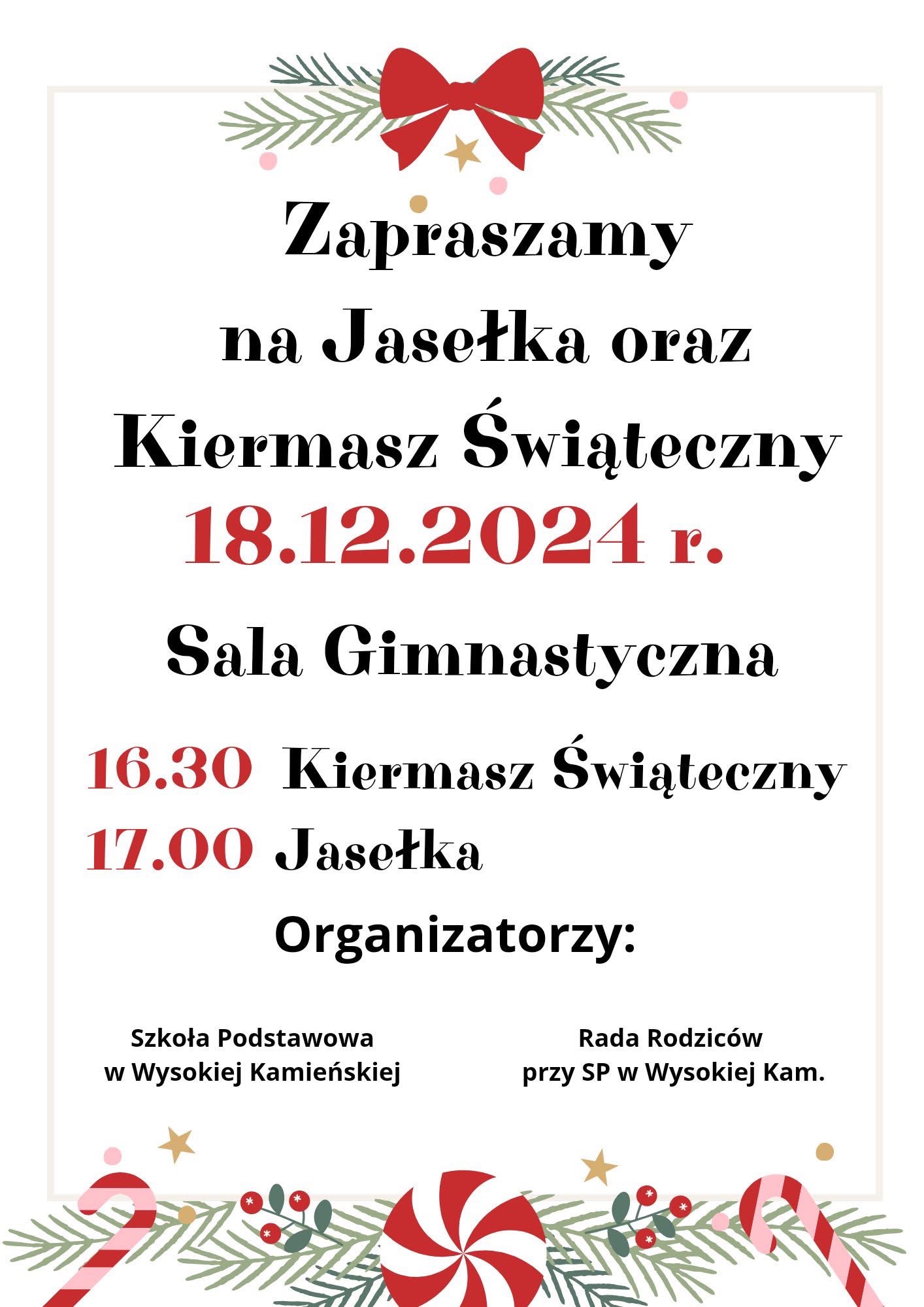 Zapraszamy na Jasełka oraz kiermasz świąteczny