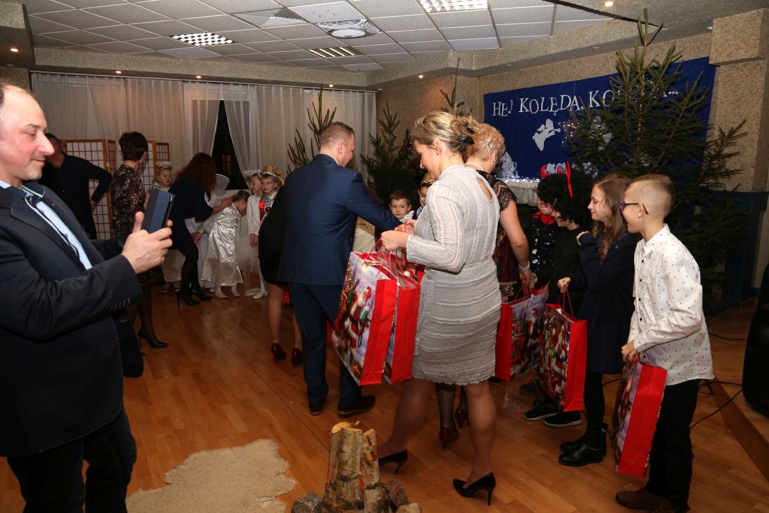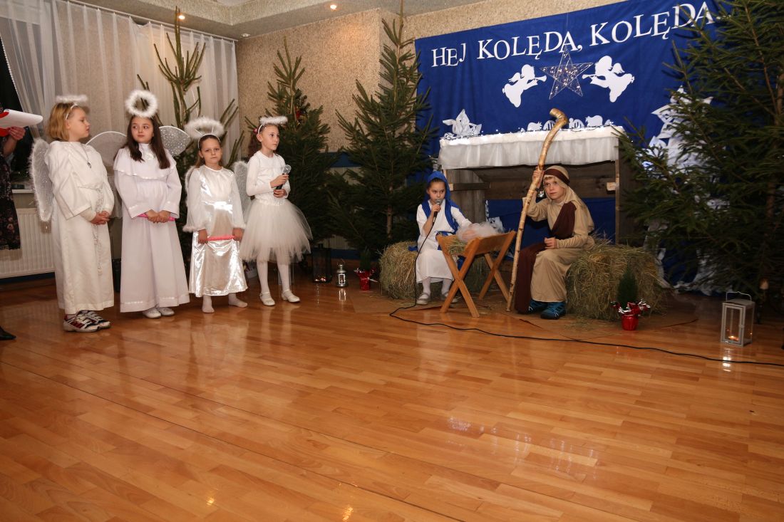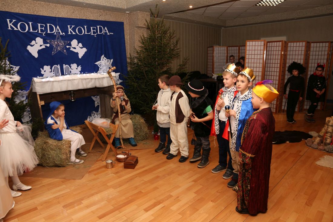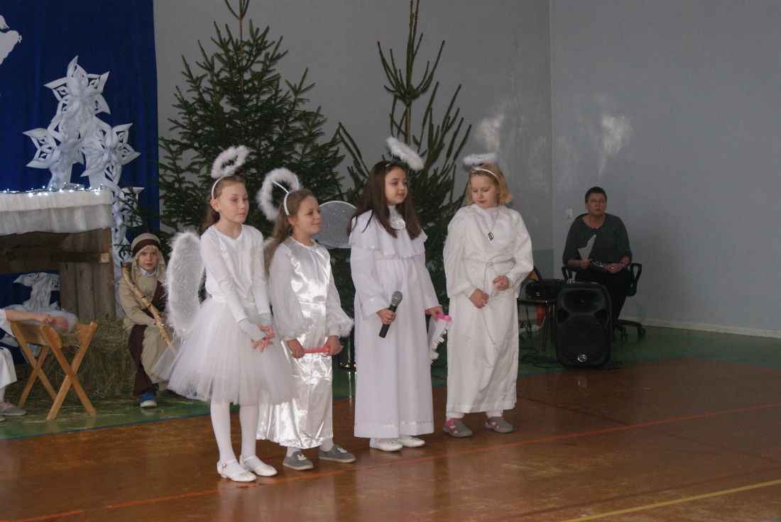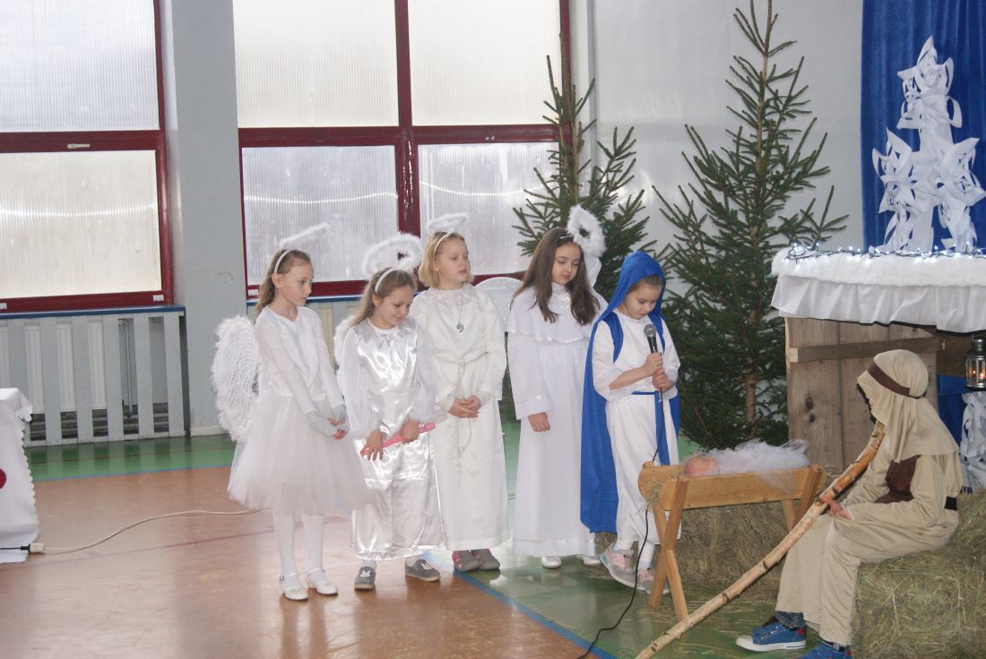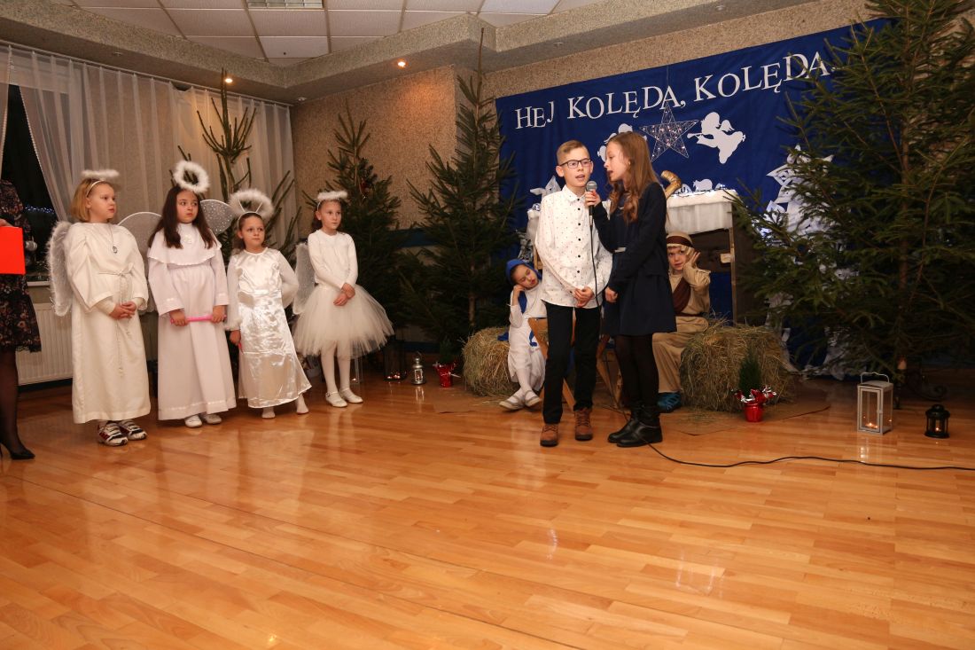 W klasach pojawiły się wigilijne stoły nakryte śnieżnobiałymi obrusami. Opłatek, życzenia, gwiazdkowe prezenty, wspólne śpiewanie kolęd oraz poczęstunek stworzyły świąteczno – noworoczny klimat. Nie zabrakło również miłej, rodzinnej atmosfery.