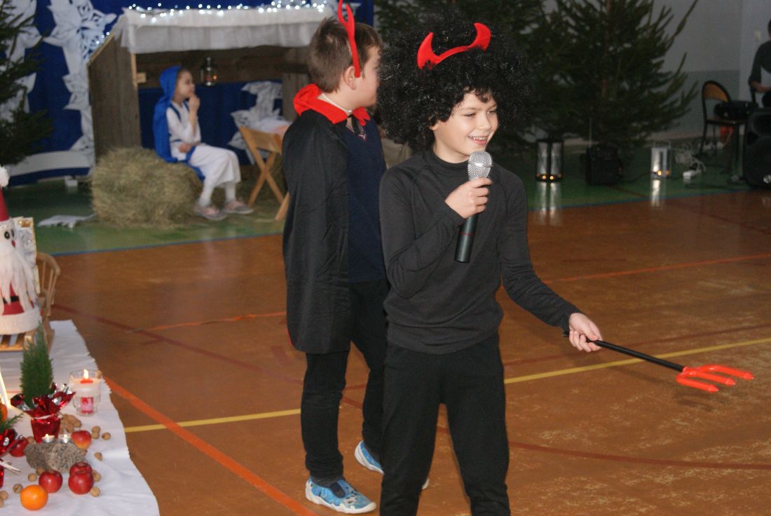 Jak stara tradycja każe, co roku w grudniu uczniowie naszej szkoły przedstawiają Jasełka Bożonarodzeniowe. Nasi uczniowie jak zwykle stanęli na wysokości zadania i przepięknie odegrali swoje role. Kolejny raz mogliśmy przeżywać historię Marii i Józefa i nowonarodzonego dzieciątka. Co roku na przedstawieniu gościmy rodziny naszych uczniów, ale w tym roku miło nam było gościć Burmistrza Golczewa Pana Macieja Zielińskiego, Proboszcza Parafii Kozielice ks. Mieczysława Kupskiego, Prezesa Stowarzyszenia na Rzecz Szkoły Podstawowej w Wysokiej Kam. Pana Tomasza Cabana oraz Przewodniczącą Rady Rodziców Panią Agnieszkę Chosińską. Po występie Pan Burmistrz i ksiądz Proboszcz podziękowali wszystkim zaangażowanym w przygotowanie jasełek i złożyli życzenia z okazji nadchodzących świąt Bożego Narodzenia.