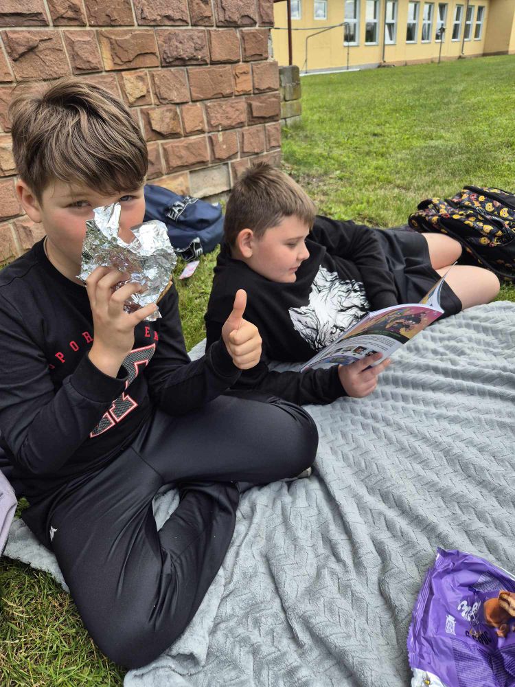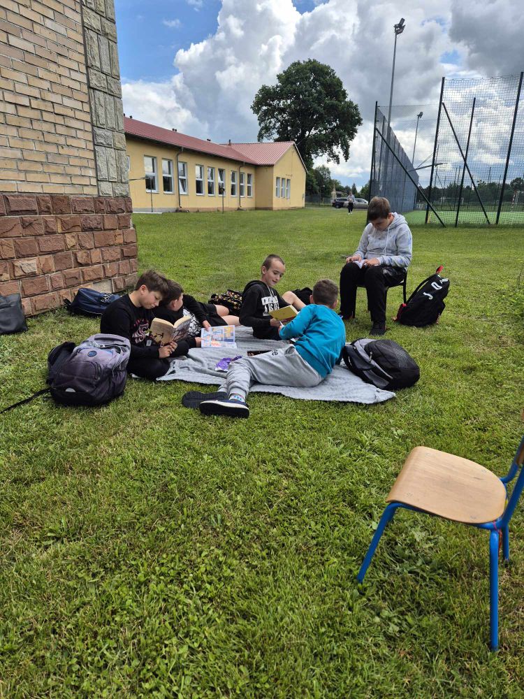 13 czerwca 2024 r. uczniowie klasy piątej wspólnie z nauczycielem języka polskiego zorganizowali piknik z książką. Ta inicjatywa zachęciła młodzież do sięgnięcia po literaturę i spędzenia czasu na świeżym powietrzu. Podczas pikniku uczniowie mieli okazję do rozmów na temat przeczytanych książek, dzielić się wrażeniami i pogłębiać swoje zrozumienie tekstu. Była to również doskonała okazja do rozrywki i integracji poprzez gry planszowe i sportowe, które pobudzają kreatywność, współpracę i zdolności logicznego myślenia. Dzięki piknikowi uczniowie mieli szansę na chwilę oderwania się od codzienności, odkrywania nowych światów i poznawania samych siebie. To niezwykłe wydarzenie, które połączyło edukację z zabawą.