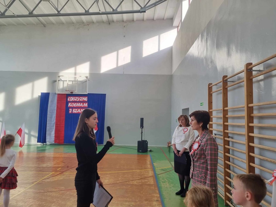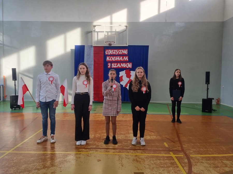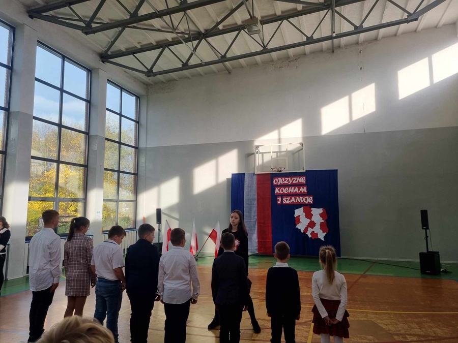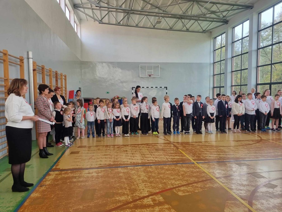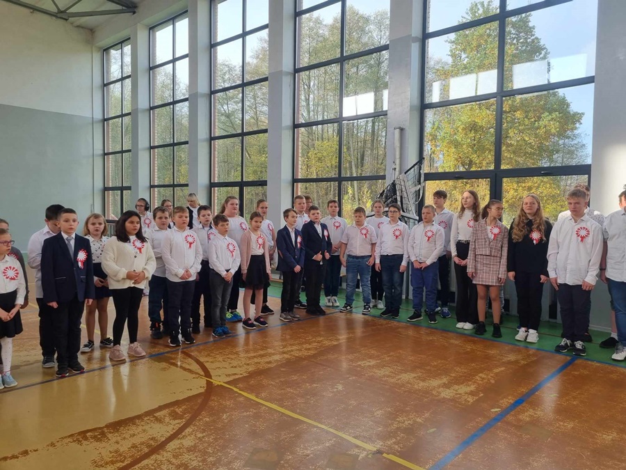 Te piękne słowa towarzyszyły obchodom 105 Rocznicy Odzyskania Niepodległości przez Polskę w naszej szkole. Podczas uroczystego apelu tradycyjnie odśpiewaliśmy pełną wersję hymnu narodowego. Warto podkreślić, że od kilku lat systematycznie uczestniczymy w akcji „ Szkoła do hymnu”.
