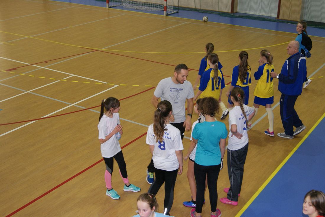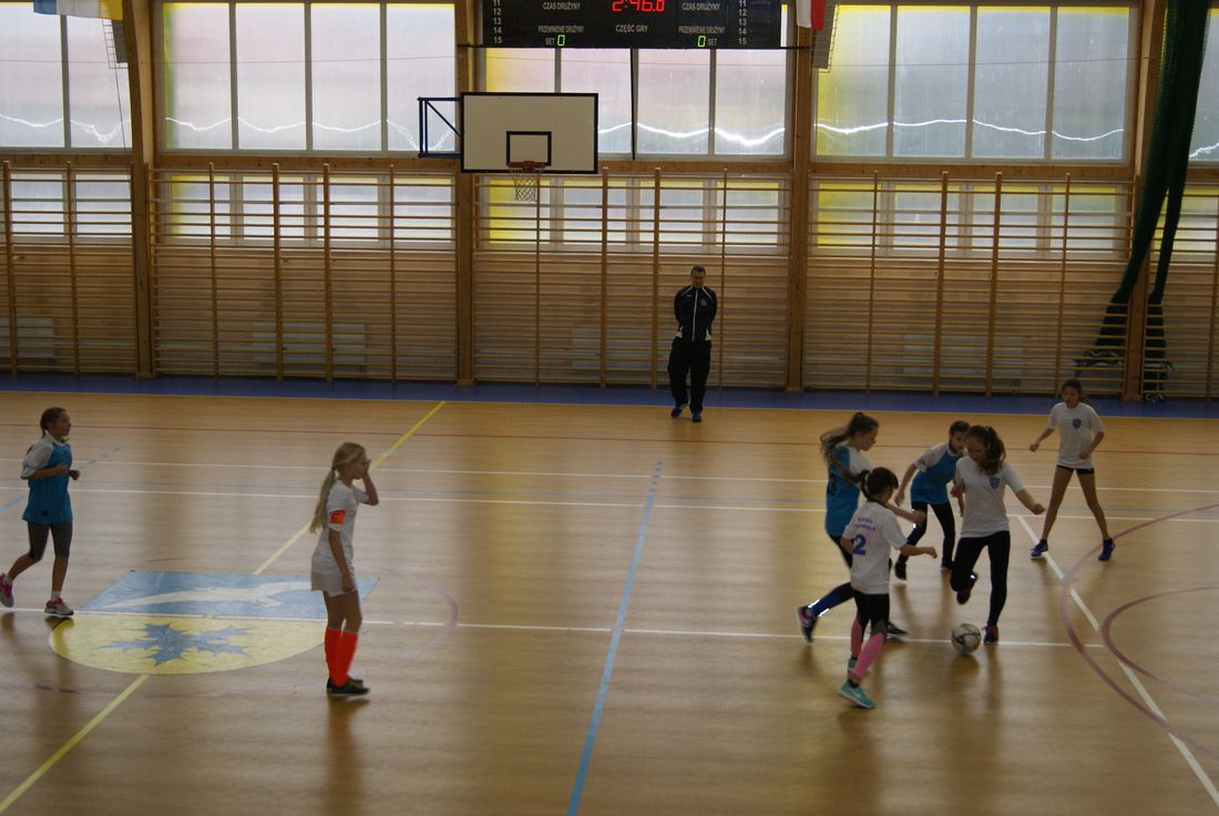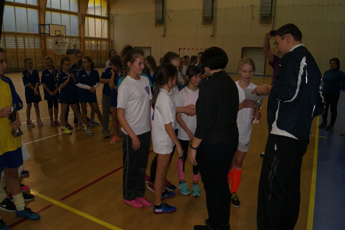 W środę 22 listopada dziewczęta z naszej szkoły wzięły udział w Mistrzostwach Powiatu w Halowej Piłce Nożnej, które odbyły się w Dziwnowie. Do zawodów przystąpiło osiem szkół podstawowych z powiatu kamieńskiego: Dziwnów, Międzyzdroje, Kamień Pomorski, Wrzosowo, Wolin i Kołczewo. Drużyny podzielono na 2 grupy, w których rywalizowano systemem „każdy z każdym”. Nasze dziewczęta zajęły pierwsze miejsce w grupie wygrywając z uczennicami z Kamienia Pomorskiego 2:0 (bramki: Marika Leśniak, Nikola Musiał) oraz z Wrzosowa 1:0 (bramka Aleksandra Grudzińska). W meczu z Wolinem padł bezbramkowy remis. W meczu półfinałowym zmierzyliśmy się z gospodarzem turnieju. Pojedynek zakończył się zwycięstwem naszej ekipy 1:0, a decydującą bramkę zdobyła Nikola Musiał. W finale zmierzyliśmy się z piłkarkami z Międzyzdrojów. Mecz był bardzo wyrównany i w regulaminowym czasie gry padł remis 0:0. Pojedynek został rozstrzygnięty w serii rzutów karnych, które wykonywały po 3 zawodniczki z każdej drużyny. Zwycięstwem mogliśmy cieszyć się dzięki temu, że nasze dziewczęta: Hanna Leus, Aleksandra Grudzińska i Nikola Musiał strzelały bezbłędnie oraz bramkarka Hanna Leus obroniła pierwszy rzut karny. Na zakończenie drużyna odebrała dyplom i puchar, który w imieniu Starosty Kamieńskiego wręczył Powiatowy Koordynator Sportu i zarazem Główny Sędzia zawodów Pan Marek Szymański.