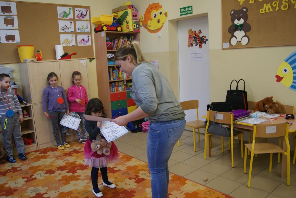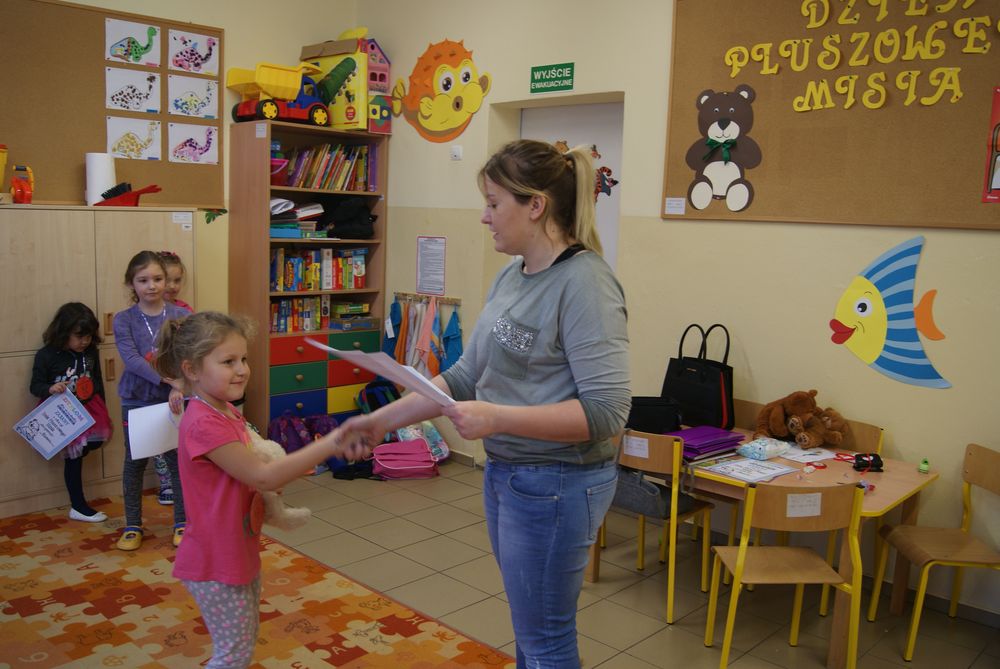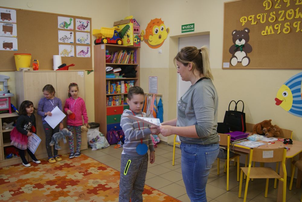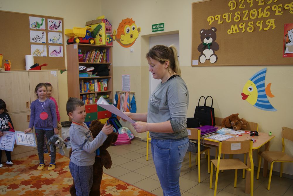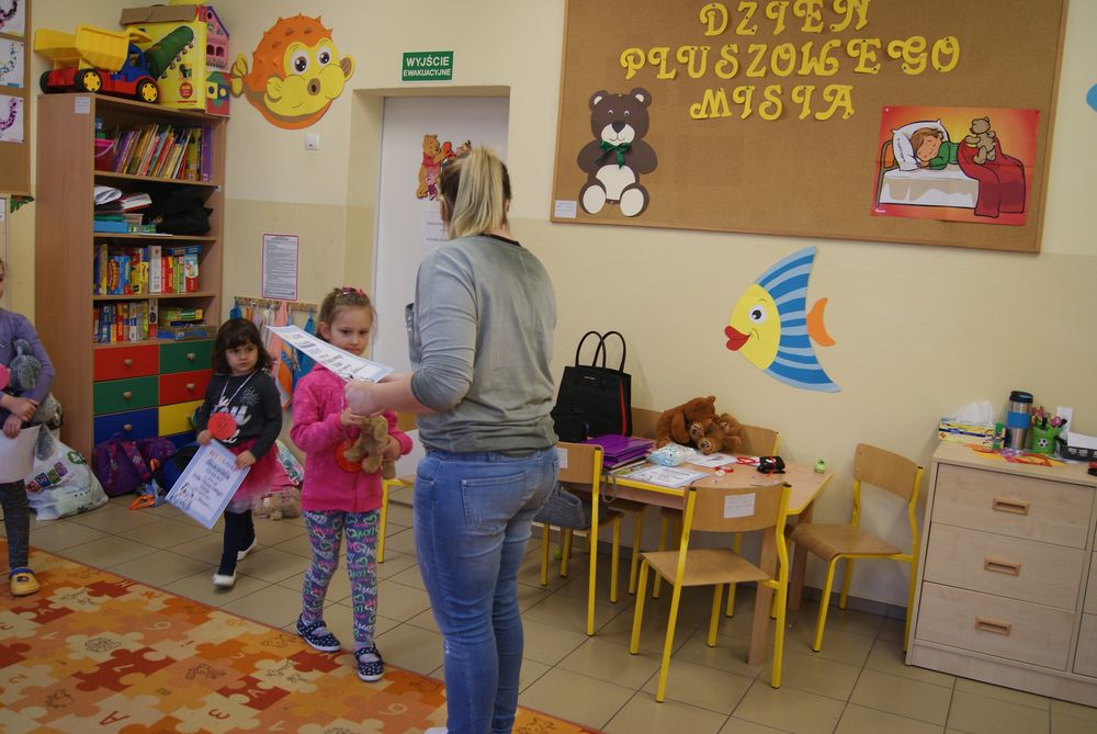 24 listopada 2017 r. upłynął dla grupy przedszkolaków pod znakiem misia. Wszystko z powodu przypadającego na dzień 25 listopada – Święta Pluszowego Misia. Małe, duże, kolorowe, puchate i mięciutkie misie opanowały salę, bo przedszkolaki przynosiły do przedszkola swoje ulubione pluszowe misie. Dzieci poznały historię pluszowego misia, dowiedziały się co nieco o życiu niedźwiedzi, słuchały bajek o misiach, bawiły się w starą zabawę „Stary niedźwiedź”, śpiewały piosenkę Gummy Bear, wyklejały misie kolorowym papierem, a także wykonały maski misia z papierowych talerzyków. W nagrodę dzieci otrzymały pamiątkowe dyplomy oraz medale. Zapraszamy do obejrzenia naszej „misiowej” galerii zdjęć.