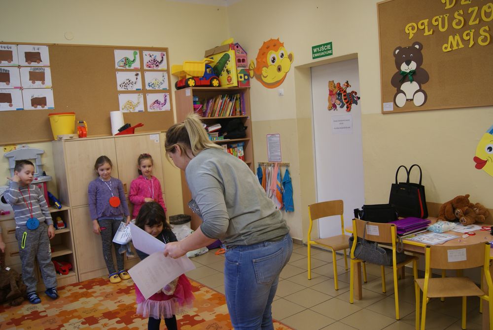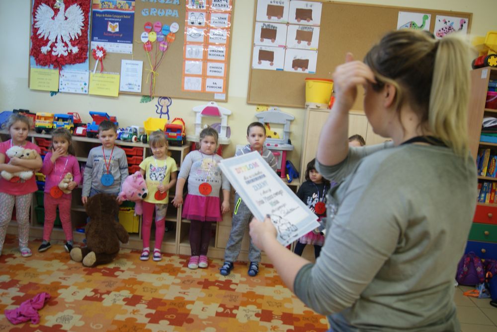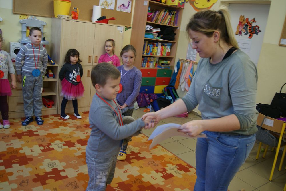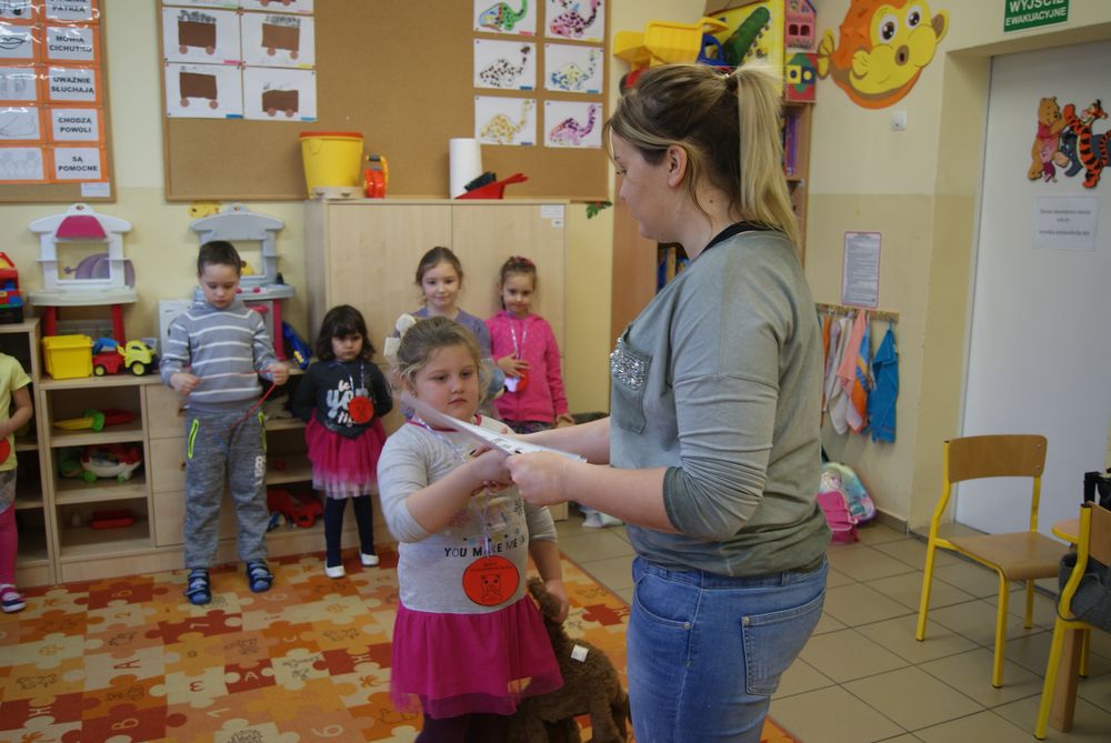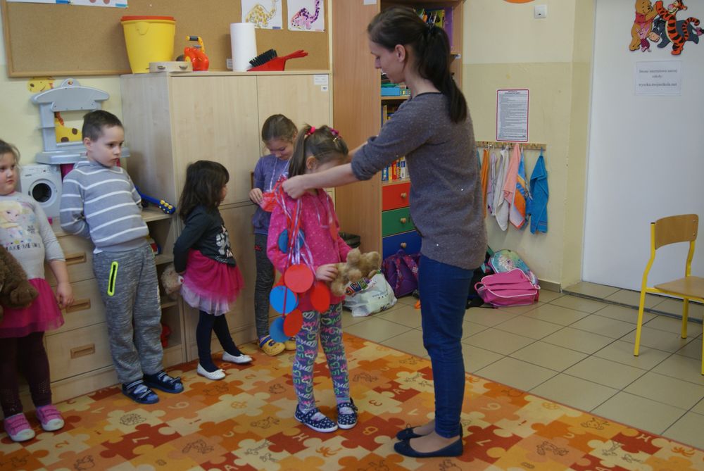 24 listopada 2017 r. upłynął dla grupy przedszkolaków pod znakiem misia. Wszystko z powodu przypadającego na dzień 25 listopada – Święta Pluszowego Misia. Małe, duże, kolorowe, puchate i mięciutkie misie opanowały salę, bo przedszkolaki przynosiły do przedszkola swoje ulubione pluszowe misie. Dzieci poznały historię pluszowego misia, dowiedziały się co nieco o życiu niedźwiedzi, słuchały bajek o misiach, bawiły się w starą zabawę „Stary niedźwiedź”, śpiewały piosenkę Gummy Bear, wyklejały misie kolorowym papierem, a także wykonały maski misia z papierowych talerzyków. W nagrodę dzieci otrzymały pamiątkowe dyplomy oraz medale. Zapraszamy do obejrzenia naszej „misiowej” galerii zdjęć.