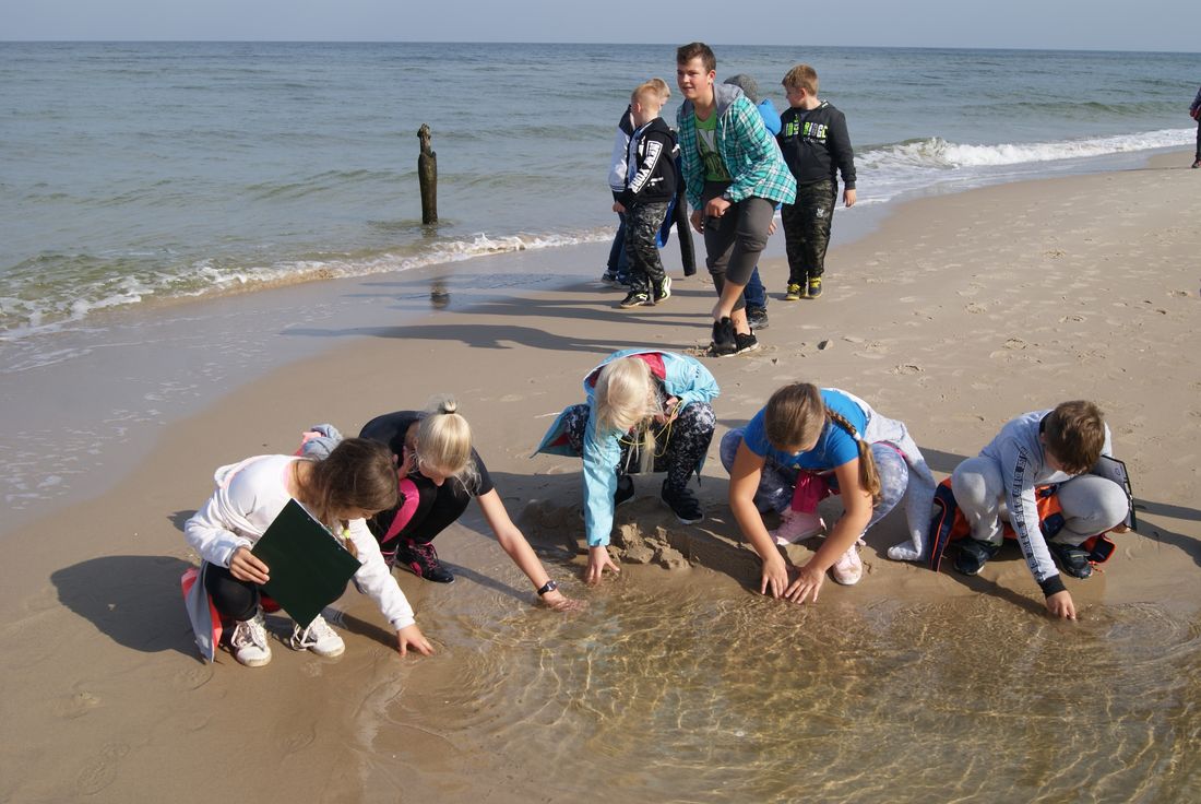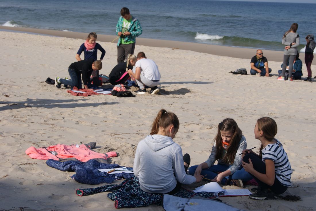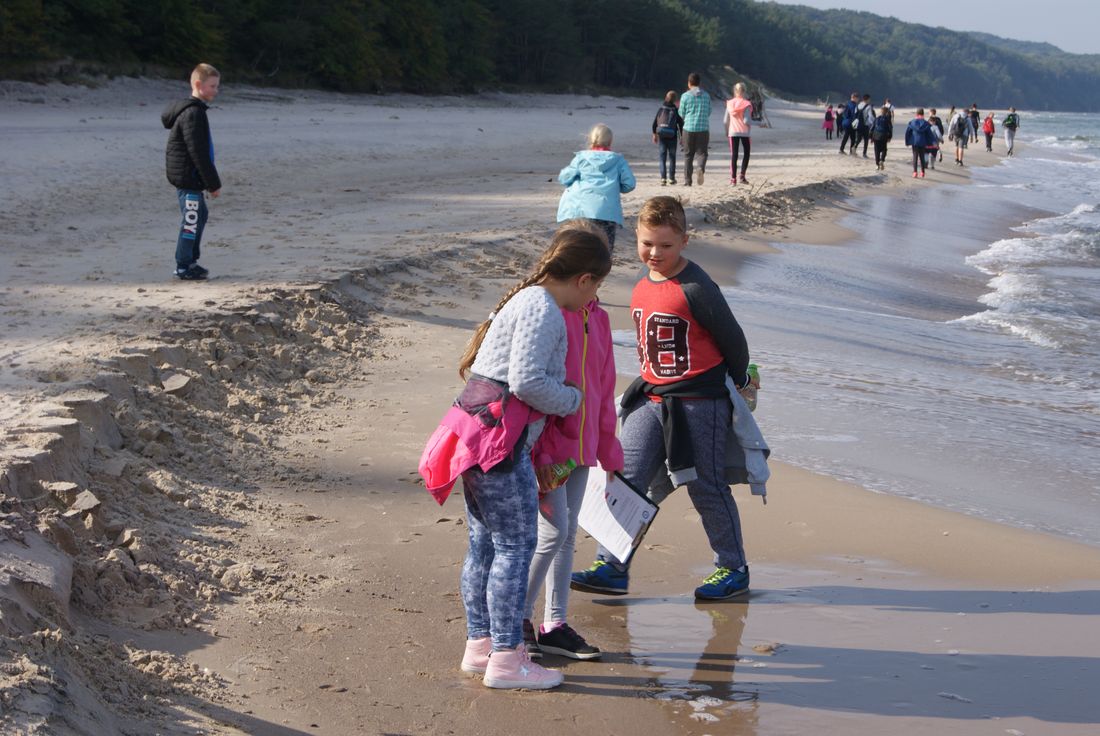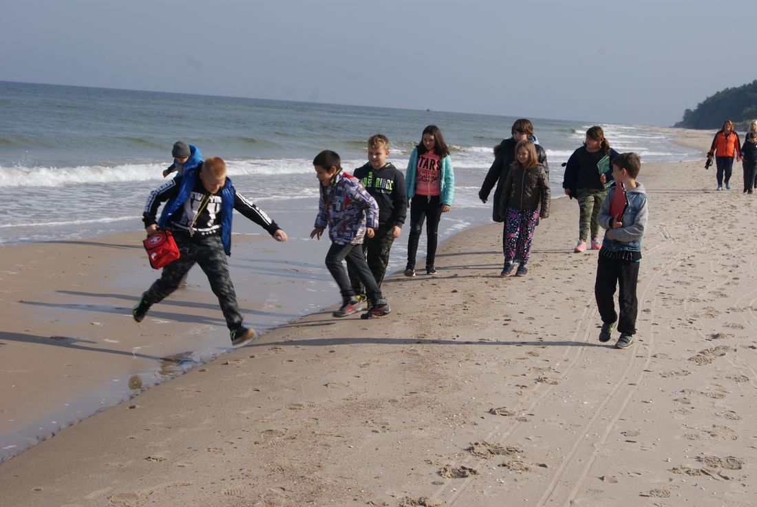 W środę 27 września 2017 roku uczniowie klas IV- VII z wychowawcami udali się jak co dzień na zajęcia edukacyjne, ale tym razem na zupełnie inną lekcję przyrody do Centrum Współpracy Międzynarodowej w Grodnie leżącym na terenie Wolińskiego Parku Narodowego. Część zajęć odbywała się w terenie. Uczniowie podzieleni na grupy badawcze prowadzili obserwacje krajobrazu nad brzegiem morza oraz na plaży, określali czynniki wpływające na jego zmiany oraz stopień przekształcenia w związku z działalnością człowieka. Czuwali nad nimi eksperci z dziedziny nauk przyrodniczych. Podsumowanie zgromadzonego materiału miało miejsce w sali konferencyjnej CWM.