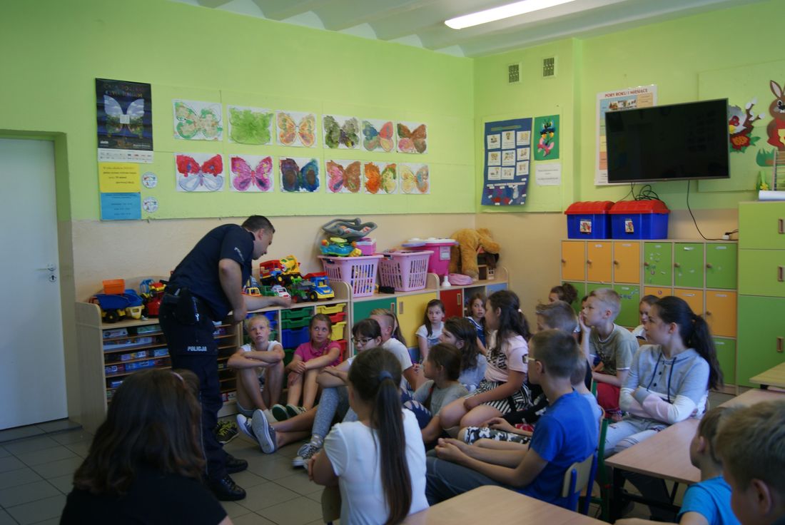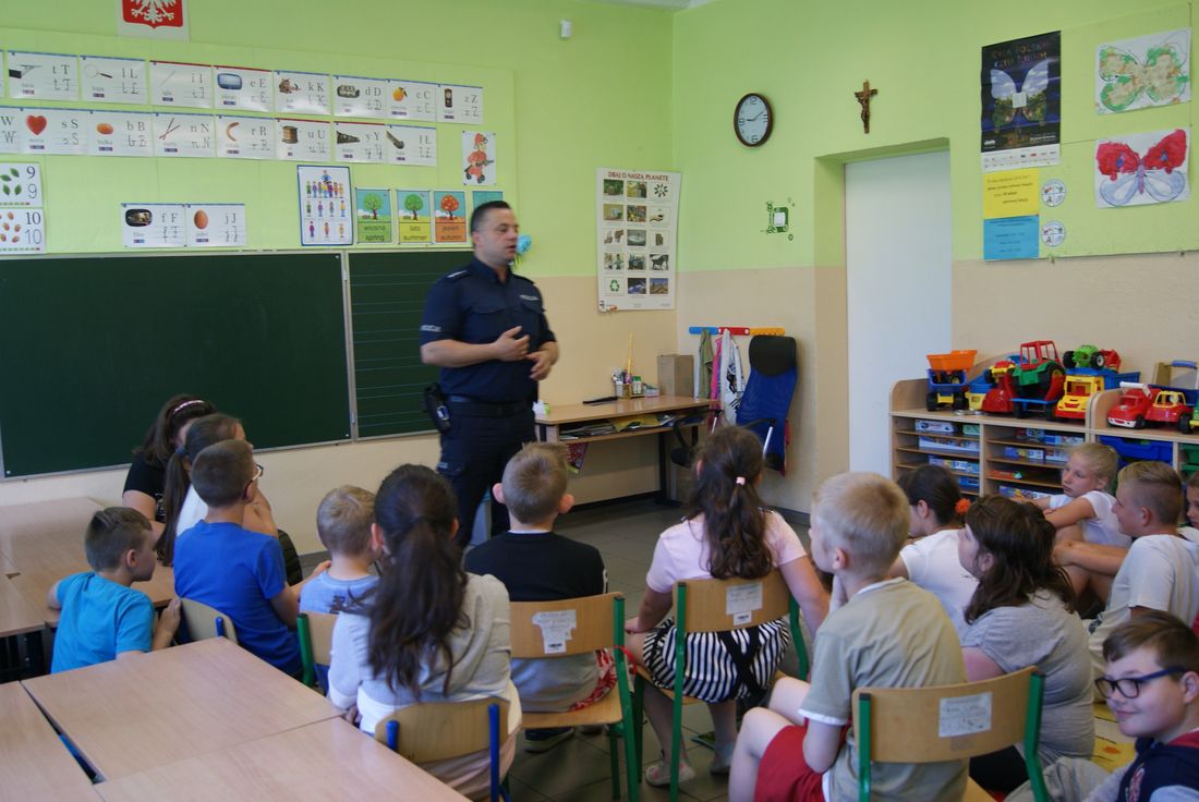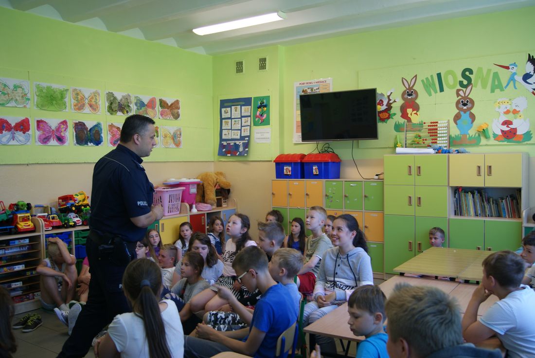 Nadchodzące wakacje to czas wypoczynku, wolnego czasu i większej swobody. Trzeba jednak pamiętać, by spędzać je bezpiecznie i w dobrej formie powrócić do szkoły. Niestety zdarza się, że młodzi ludzie z różnych powodów, zwłaszcza podczas wakacji, sięgają po substancje uzależniające, które nie są obojętne dla zdrowia i życia. Policjanci zwracali na to uwagę, szczegółowo przedstawili zagrożenia związane zwłaszcza z zażywaniem tzw. dopalaczy -substancji o stale zmieniającym się składzie, które powodują ogromne i nieodwracalne zmiany w organizmie, nierzadko kończące się śmiercią. Kolejny raz poruszony został problem bezpiecznego korzystania z internetu – przypomniane zostały zasady korzystania z mediów elektronicznych, ograniczonego zaufania do innych użytkowników, ochrony swoich danych. Dzięki tym pouczającym spotkaniom z pewnością wzrosła świadomość uczniów w zakresie własnego bezpieczeństwa, co niewątpliwie przyczyni się do obniżenia ryzyka groźnych i niepożądanych sytuacji , które mogą zaistnieć podczas wakacji. Zachęcamy rodziców do zachowania stałej, systematycznej czujności rodzicielskiej, także podczas letniego wypoczynku.