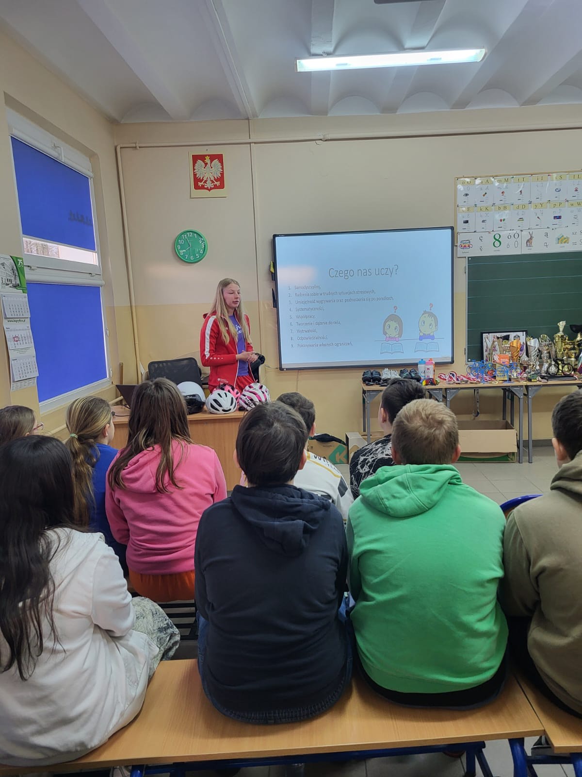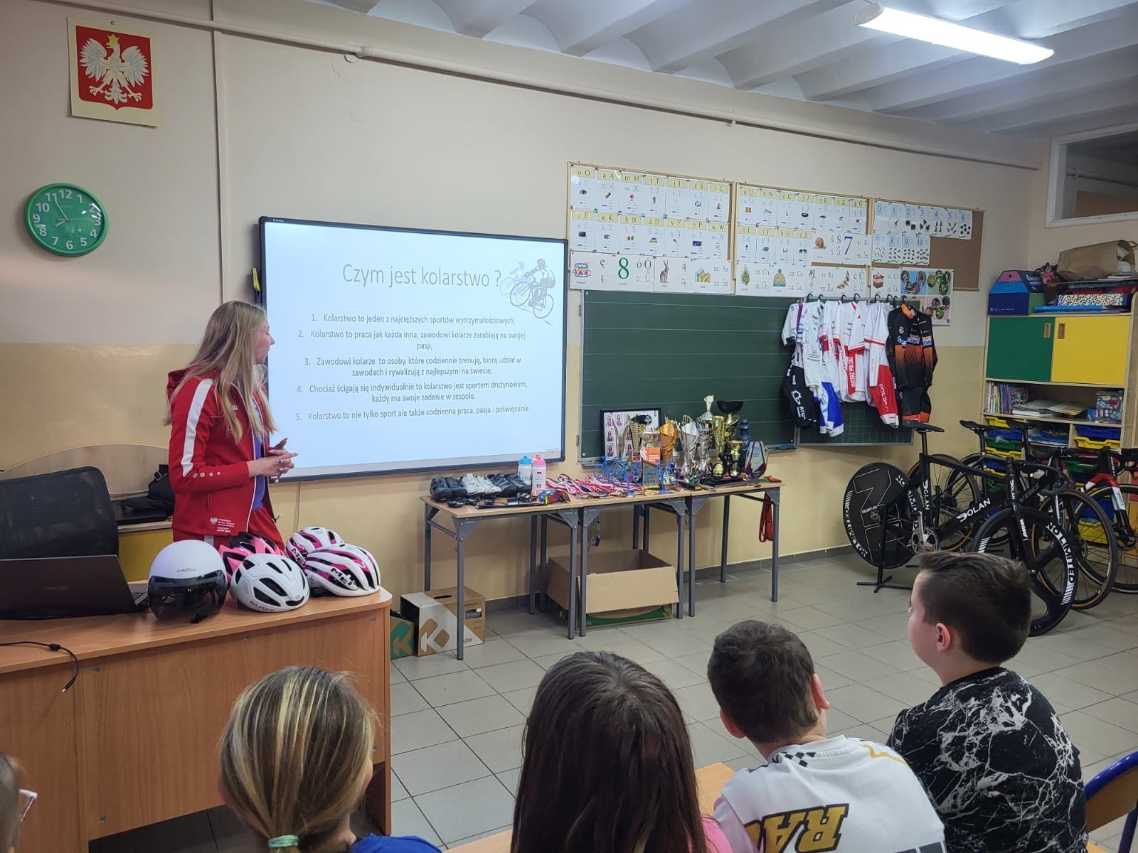 W piątek 14 marca 2025 roku w Szkole Podstawowej w Wysokiej Kamieńskiej odbyło się niecodzienne i interesujące spotkanie z Aleksandrą Grudzińską. Jego tematem była sportowa pasja naszego Gościa, a jest nią kolarstwo.