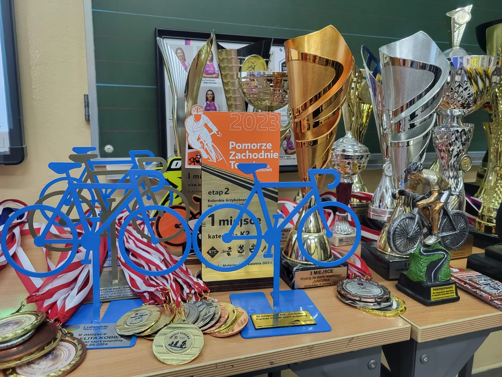 Swoją przygodę z tą dyscypliną sportu pani Ola rozpoczęła jako uczennica klasy siódmej naszej szkoły. W roku 2017 wraz z kilkoma osobami m.in. Pauliną Świerzbin, Kacprem Soleckim i Mariką Leśniak zaczęła treningi pod kierunkiem doświadczonego trenera pana Jacka Kołby w LKS BASZTA Golczewo. Przez dwa lata pozostawała jedyną dziewczyną wśród zawodników startujących w Kategorii Młodziczka. Od tej pory minęło już osiem lat wypełnionych nauką, treningami, licznymi wyjazdami, zawodami, tysiącami kilometrów przejechanych na rowerze, ciężką pracą, która zaowocowała licznymi sukcesami. Młoda zawodniczka z wielkim zaangażowaniem przybliżyła zebranym uczniom tajniki kolarstwa oraz podzieliła się swoim doświadczeniem. W tym celu wykorzystała przygotowaną przez siebie niezwykle zajmującą prezentację. Dzięki temu uczestnicy spotkania mogli dowiedzieć się, czym jest kolarstwo, czego uczy ta dyscyplina sportu, jakie są jej rodzaje, kategorie wiekowe, najważniejsze kolarskie wyścigi, rodzaje rowerów, jak wygląda standardowy dzień treningowy. Nasz Gość podkreślał, że kolarstwo to dyscyplina sportu, ale także pasja, poświęcenie, praca indywidualna i zespołowa, gdyż bez tego niemożliwe jest osiąganie sukcesów.