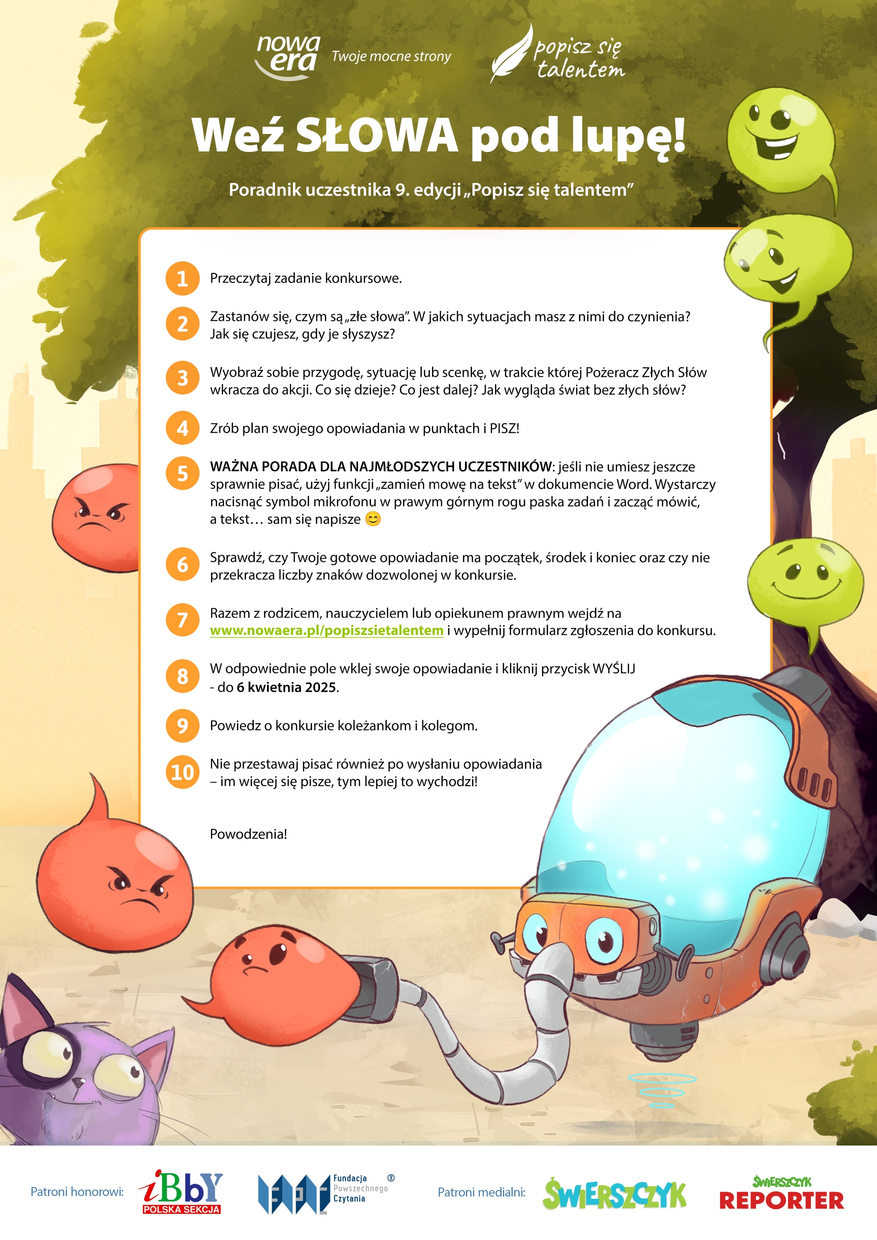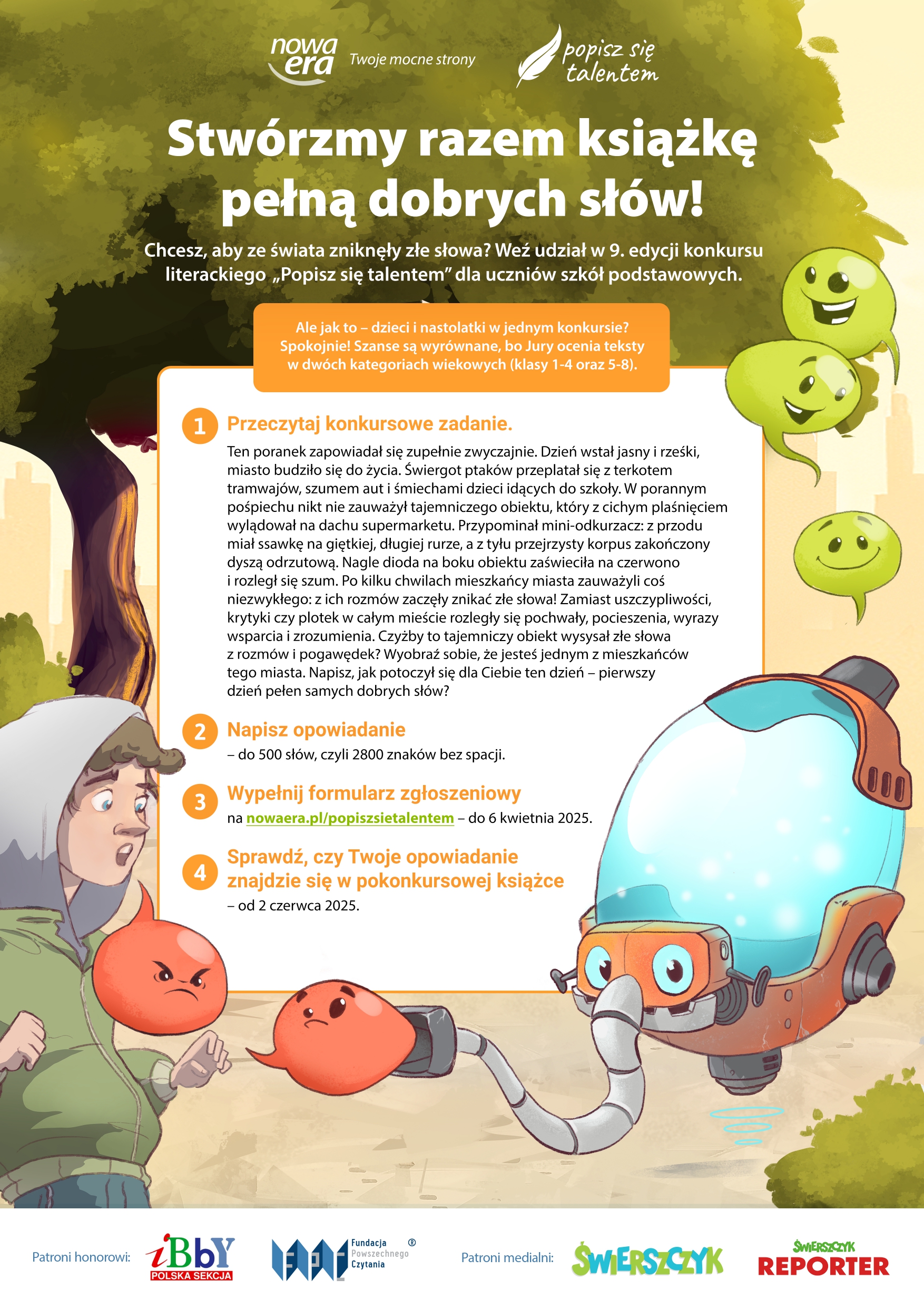 Rusza 9 edycja konkursu Popisz się talentem! – największego w kraju konkursu literackiego dla klas 1- 8 . W tym roku szukamy dobrych słów i mówimy STOP mowie nienawiści. Zachęcamy do udziału!