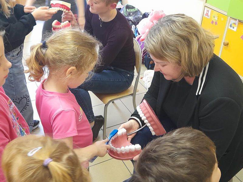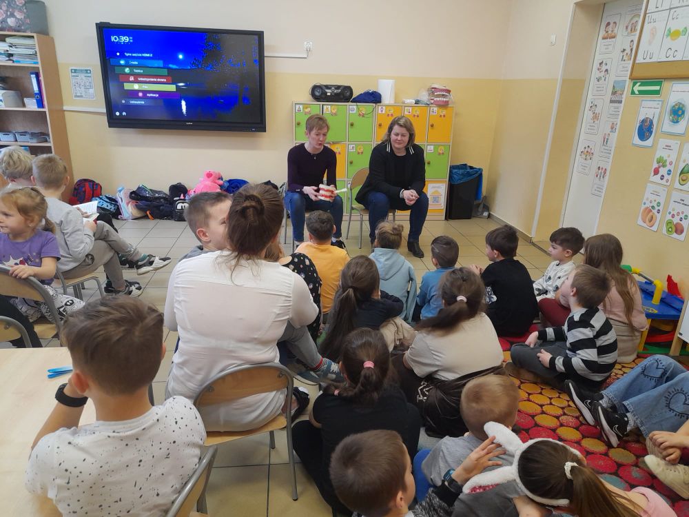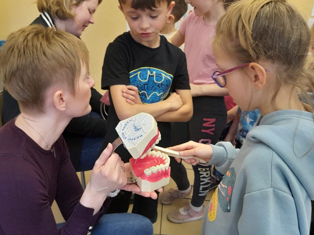Dnia 03.04.2024 r. naszą szkołę odwiedziły Panie z Powiatowej Stacji Sanitarno – Epidemiologicznej w Kamieniu Pomorskim. Spotkały się z uczniami klasy I – III oraz dziećmi z oddziału przedszkolnego w ramach realizowanych programów ,,Higiena naszą tarczą ochronną” i ,,Zdrowe zęby mamy – marchewkę zajadamy”. W pierwszej części spotkania omówiono zasady higieny osobistej: mycie rąk, higiena jamy ustnej, wieczorna toaleta, pielęgnacja skóry, włosów i paznokci.