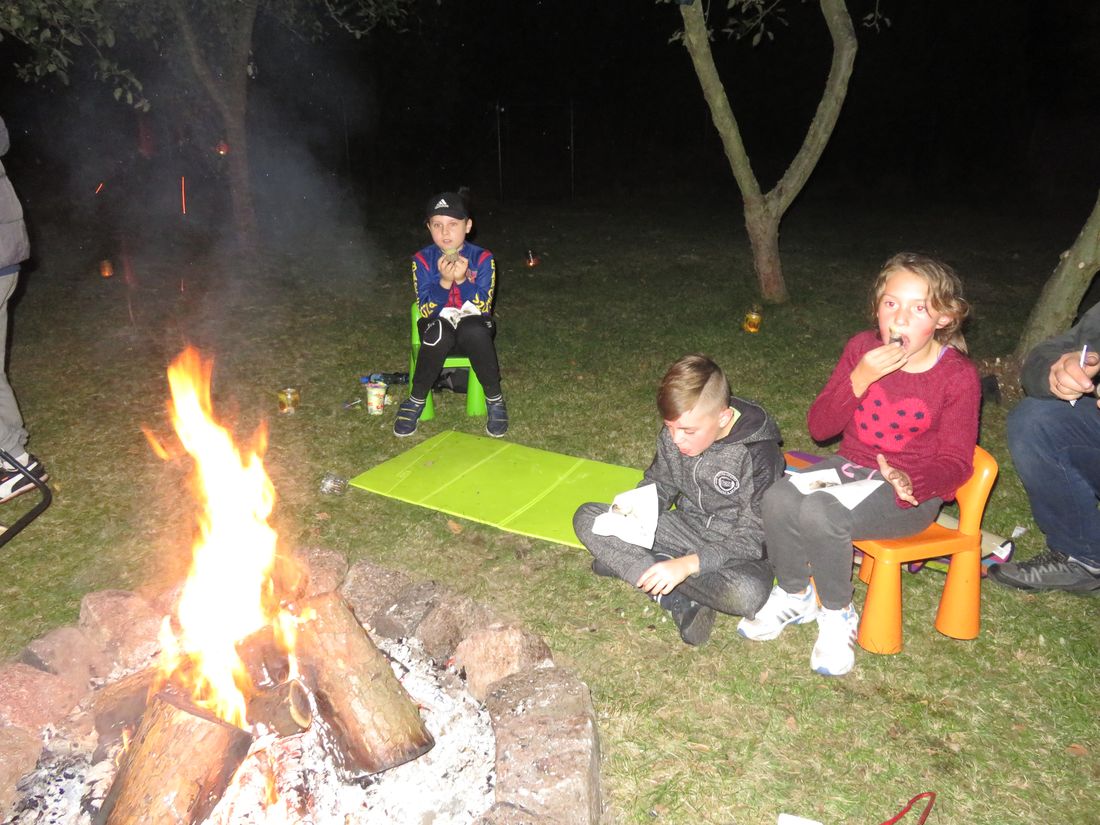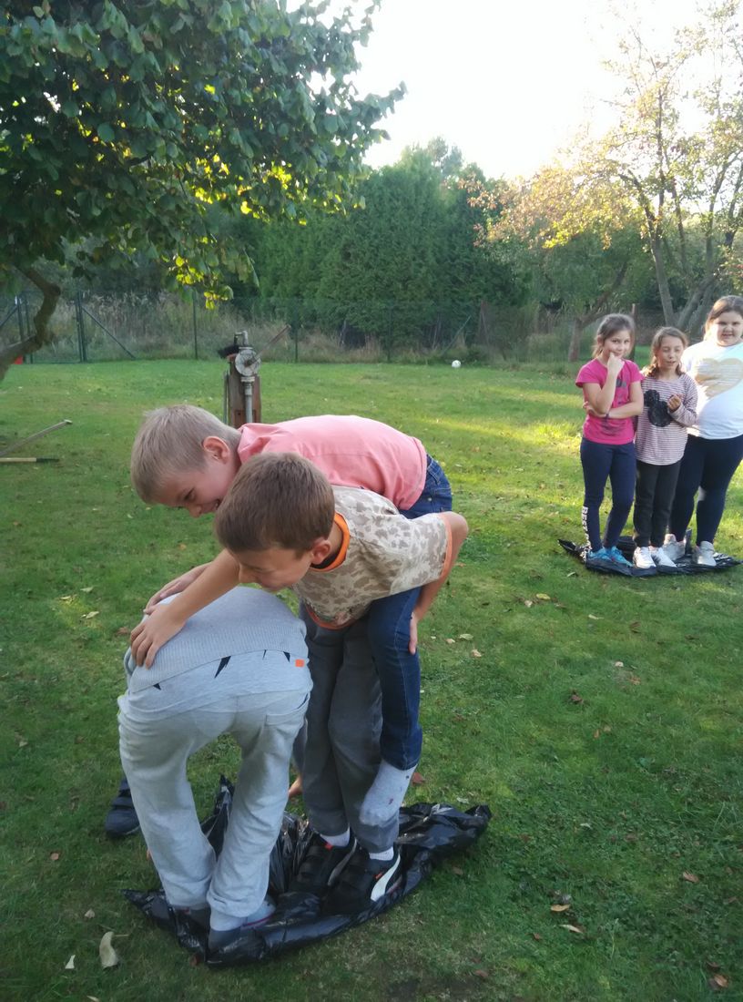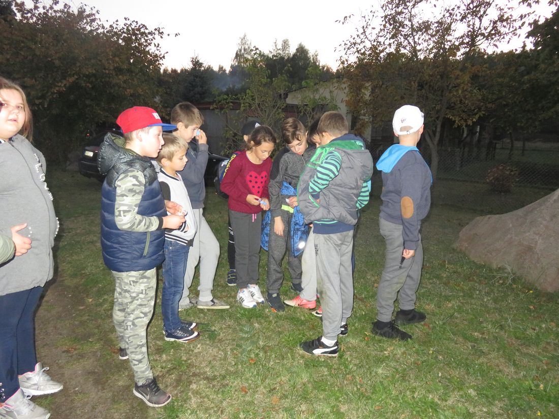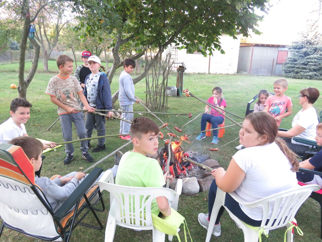 Jesień to czas zbiorów ziemniaków a przy tym świetna okazja do wspólnej zabawy. Z tej okazji skorzystali czwartoklasiści z naszej szkoły. W słoneczny październikowy piątek, uczniowie klasy IV zorganizowali Święto Pieczonego Ziemniaka. Zapłonęło duże ognisko, zapachniały smażone na kijach kiełbasy, w popiele piekły się ziemniaki. Zajęcia zorganizowane na świeżym powietrzu były doskonałą okazją do aktywnego, zdrowego spędzenia czasu, integracji i dostarczyły uczestnikom wielu wrażeń. Nie bez znaczenia pozostał fakt, że większość dzieci po raz pierwszy jadła ziemniaki pieczone w popiele, które smakowały, jak „potrawy z najlepszej kuchni”. Gdy ziemniaki piekły się w ognisku dzieci z twarzami pełnymi uśmiechów, brały udział w różnych konkursach i zawodach sportowych. Najwięcej emocji wzbudziła „bitwa gladiatorów” oraz podchody. Humory dopisywały, a relaks na świeżym powietrzu był doskonałą odskocznią od szkolnej codzienności. Zakończeniem święta była degustacja pieczonych ziemniaków połączona z „opowieściami dziwnej treści” oraz szukanie „ukrytego skarbu”. W wieczornej atmosferze przepięknego blasku dodawały własnoręcznie wykonane ze słoików lampiony.