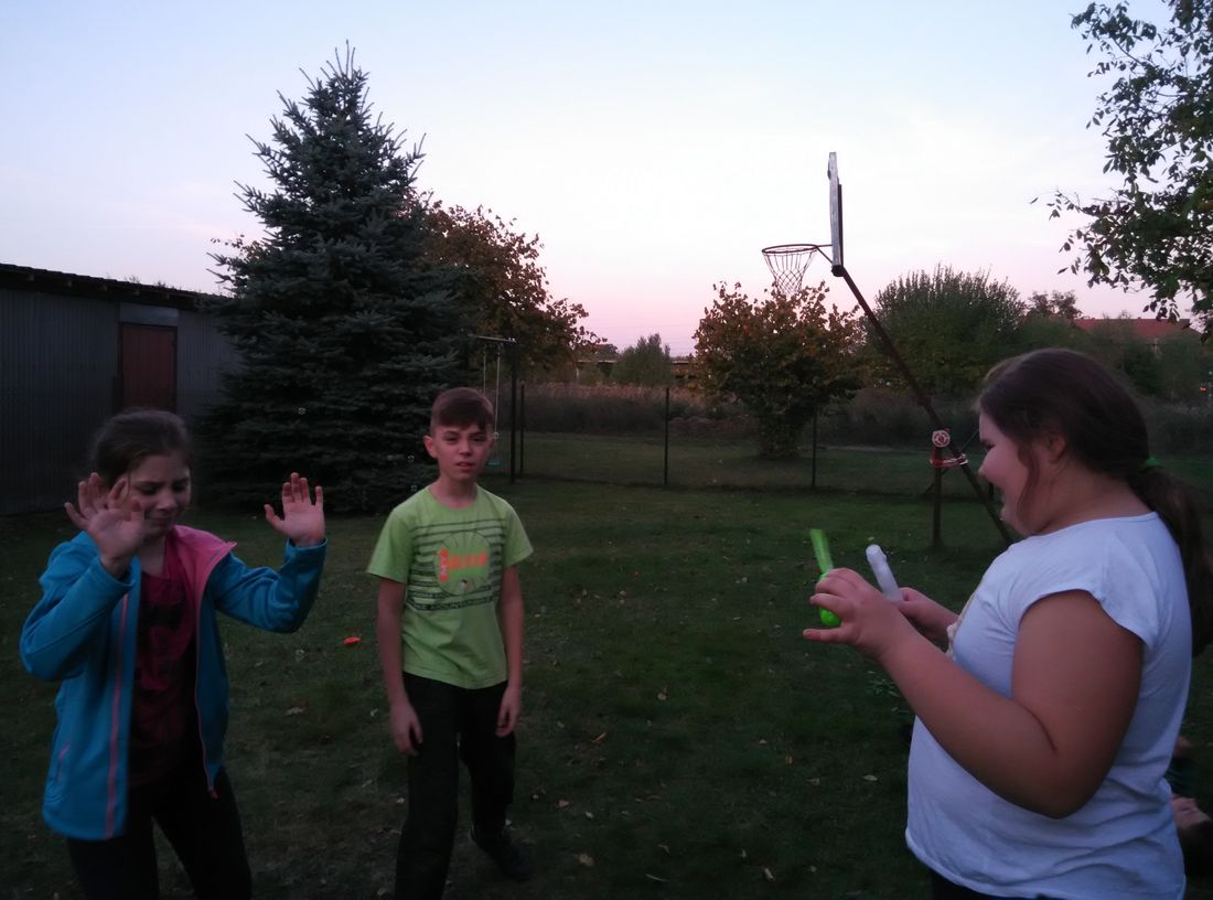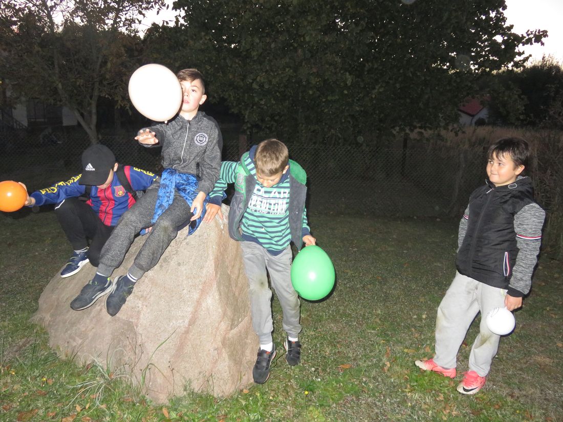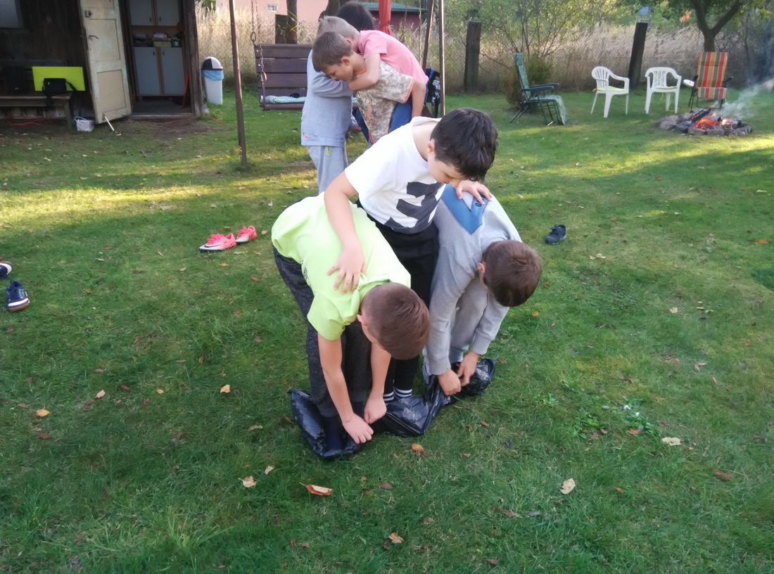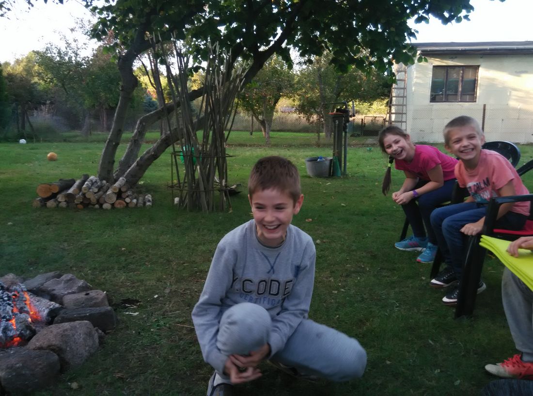 Jesień to czas zbiorów ziemniaków a przy tym świetna okazja do wspólnej zabawy. Z tej okazji skorzystali czwartoklasiści z naszej szkoły. W słoneczny październikowy piątek, uczniowie klasy IV zorganizowali Święto Pieczonego Ziemniaka. Zapłonęło duże ognisko, zapachniały smażone na kijach kiełbasy, w popiele piekły się ziemniaki. Zajęcia zorganizowane na świeżym powietrzu były doskonałą okazją do aktywnego, zdrowego spędzenia czasu, integracji i dostarczyły uczestnikom wielu wrażeń. Nie bez znaczenia pozostał fakt, że większość dzieci po raz pierwszy jadła ziemniaki pieczone w popiele, które smakowały, jak „potrawy z najlepszej kuchni”. Gdy ziemniaki piekły się w ognisku dzieci z twarzami pełnymi uśmiechów, brały udział w różnych konkursach i zawodach sportowych. Najwięcej emocji wzbudziła „bitwa gladiatorów” oraz podchody. Humory dopisywały, a relaks na świeżym powietrzu był doskonałą odskocznią od szkolnej codzienności. Zakończeniem święta była degustacja pieczonych ziemniaków połączona z „opowieściami dziwnej treści” oraz szukanie „ukrytego skarbu”. W wieczornej atmosferze przepięknego blasku dodawały własnoręcznie wykonane ze słoików lampiony.