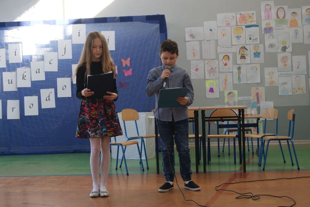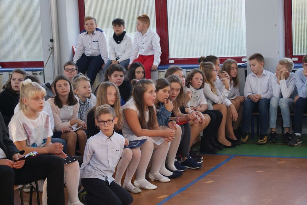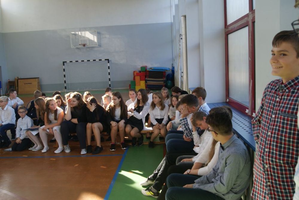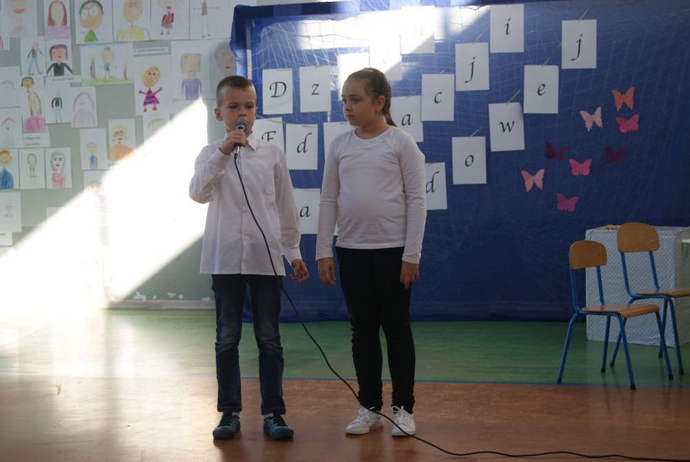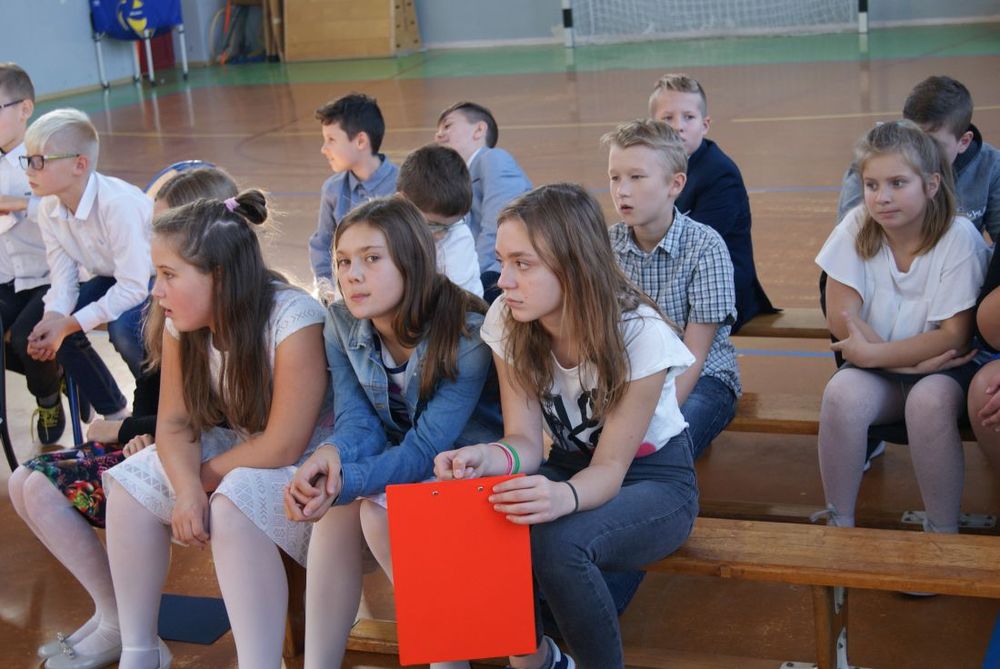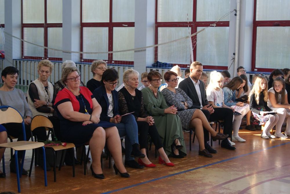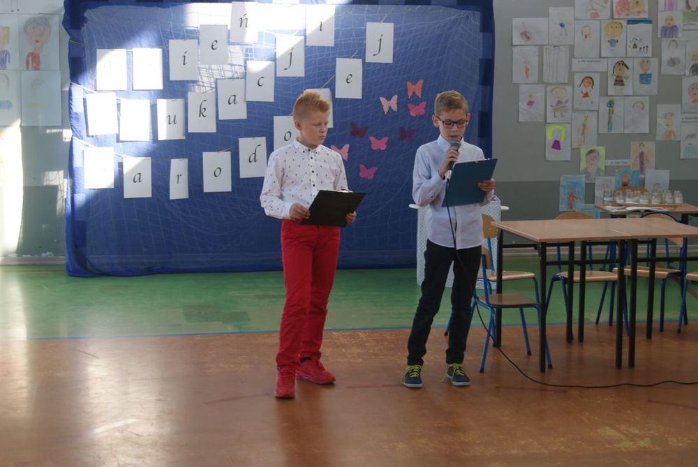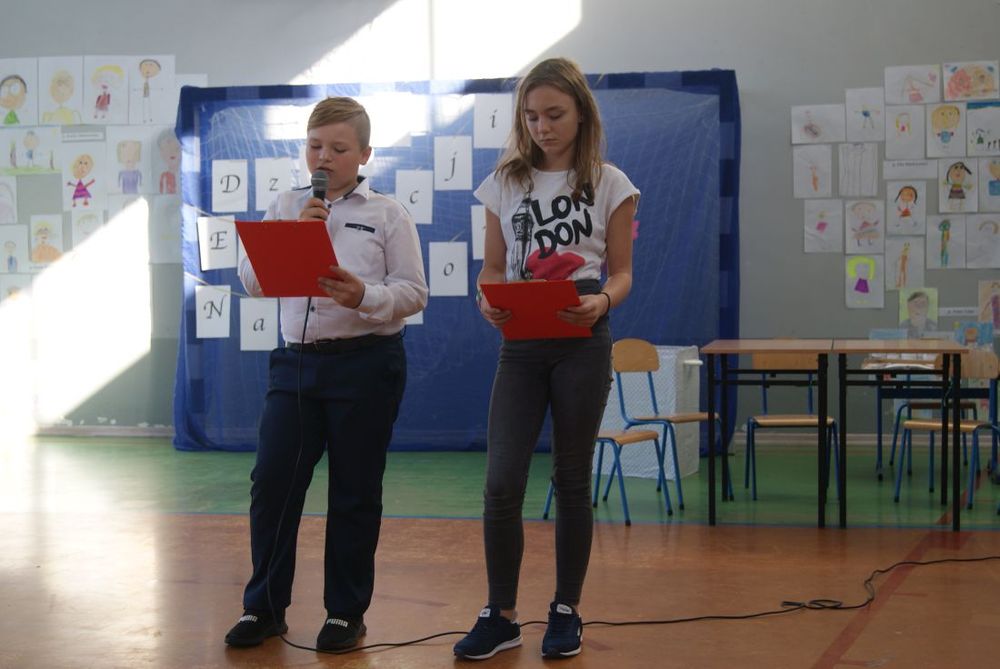 12 października 2018 roku w naszej szkole odbył się uroczysty apel z okazji Dnia Edukacji Narodowej. Uczniowie poprzez wiersze i piosenki podziękowali nauczycielom i pracownikom szkoły za trud włożony w ich edukację i wychowanie. W części artystycznej uczniowie zaprezentowali swoje zdolności aktorskie podczas lekcji języka polskiego oraz matematyki. Mieliśmy okazję poznać „formowanie ucznia ” - nowy przepis kulinarny zaprezentowany przez uczennicę kl. VII. Występy zakończył taniec „belgijka” w wykonaniu uczniów.