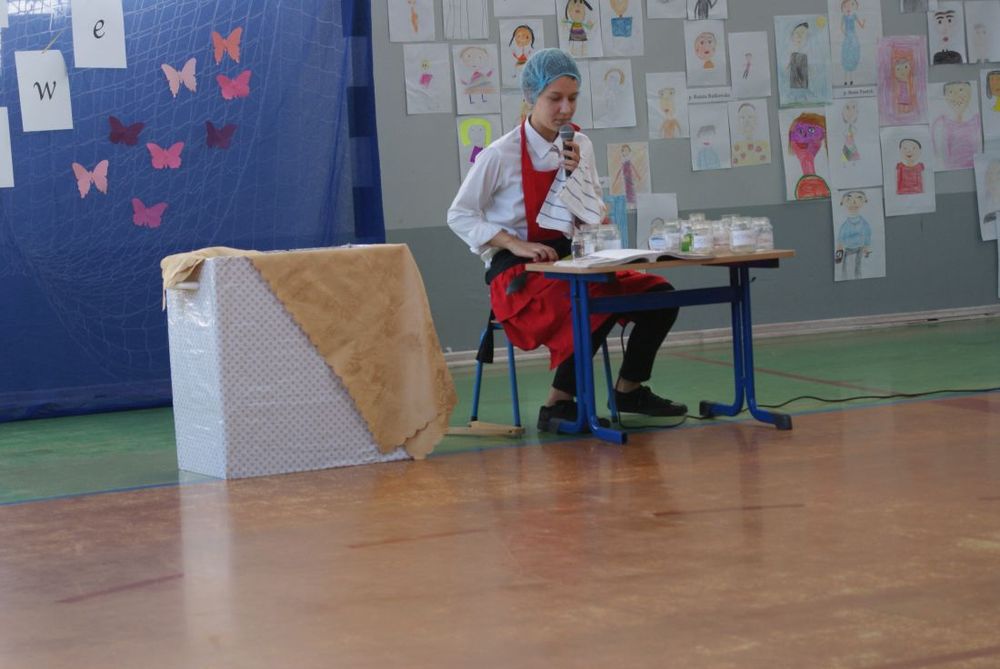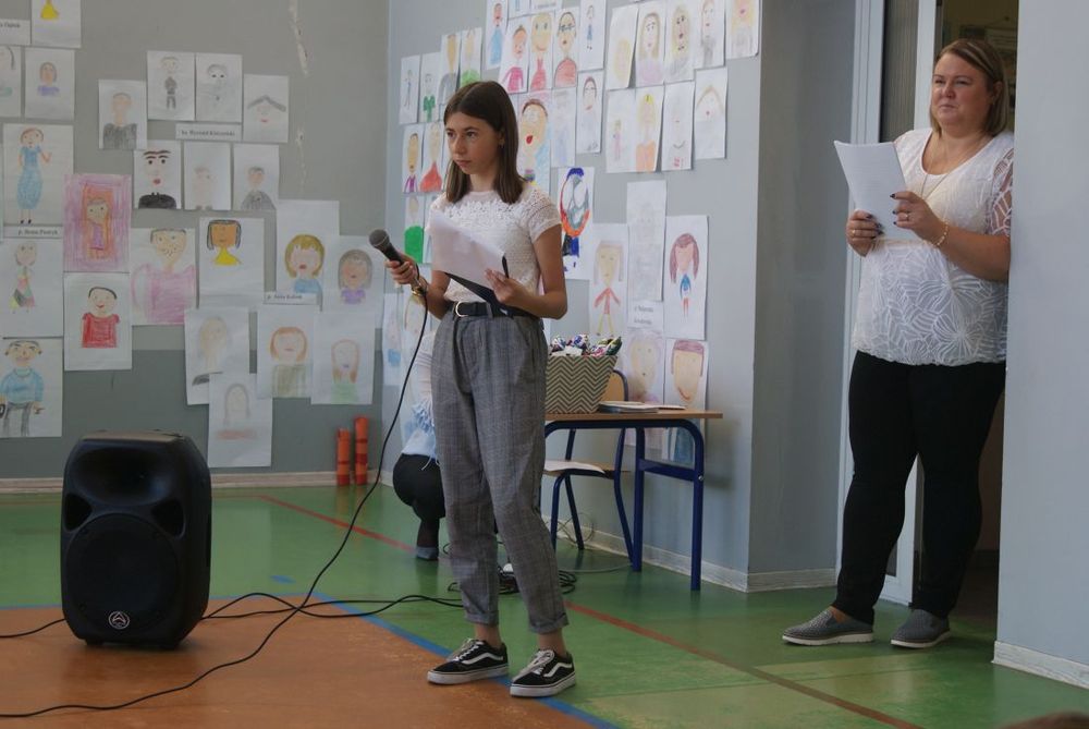 Pani Dyrektor złożyła serdeczne życzenia wszystkim nauczycielom oraz pracownikom szkoły. Wśród dekoracji pracownicy szkoły mogli odnaleźć swoje portrety, które zostały namalowane przez uczniów. Uroczystość przebiegała w miłej atmosferze.