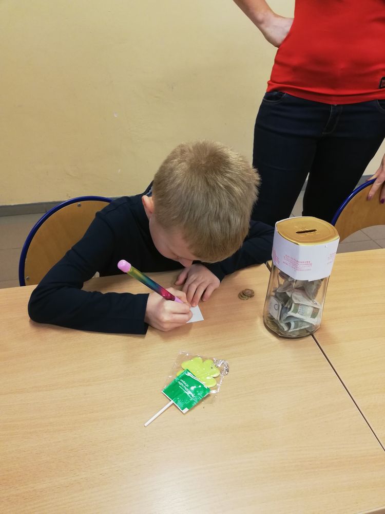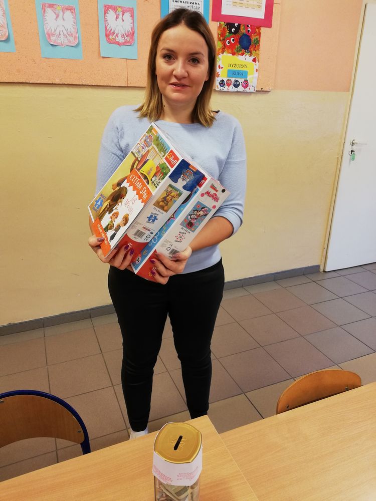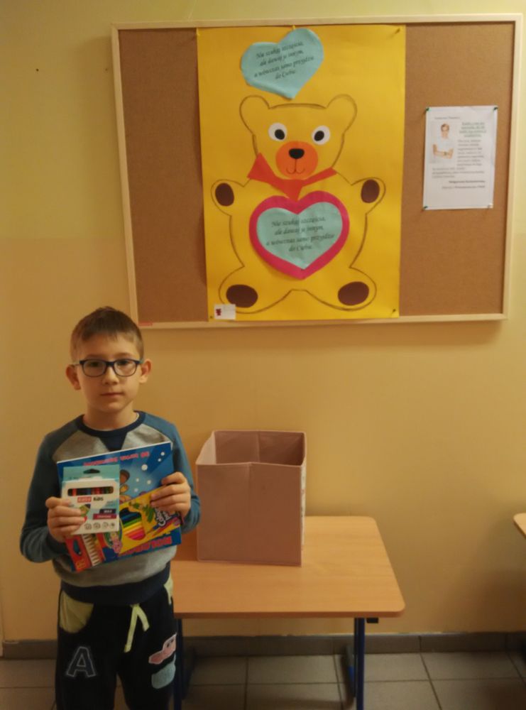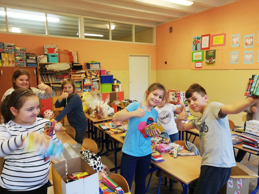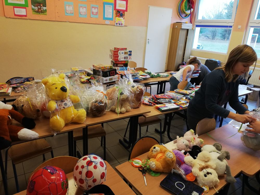 W akcję zaangażowała się cała szkoła oraz lokalna społeczność, dzięki czemu udało się zebrać 1865,16 zł za które kupione były materiały plastyczne oraz mnóstwo różnorodnych przyborów i zabawek (książeczki puzzle, kolorowanki, klocki, gry planszowe, samochodziki, lalki, pluszaki)