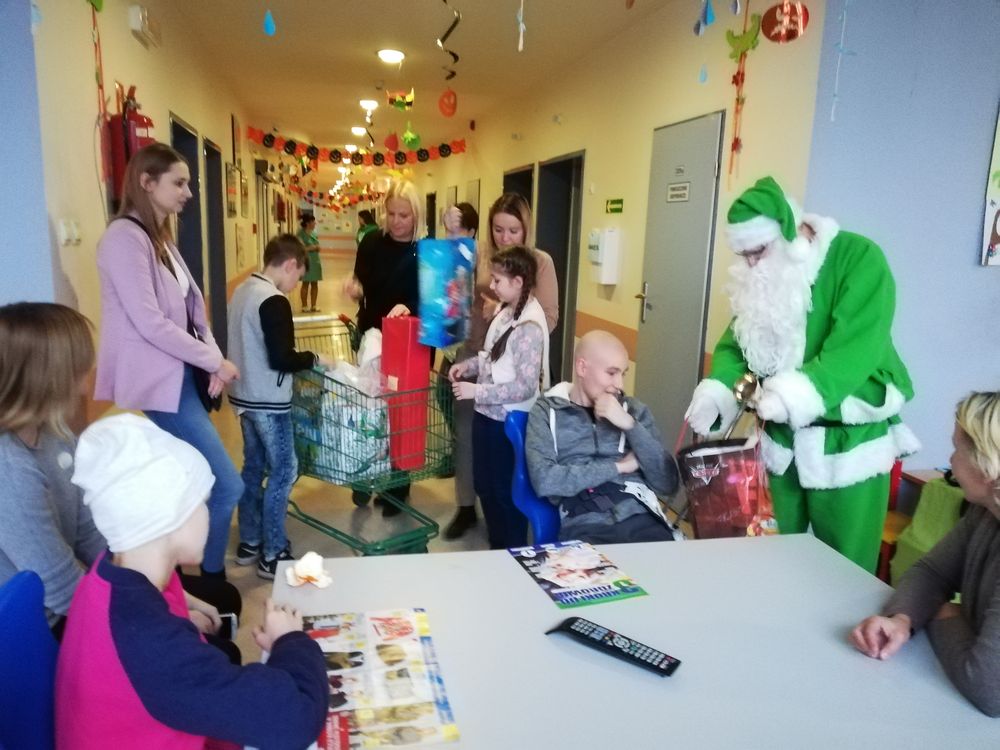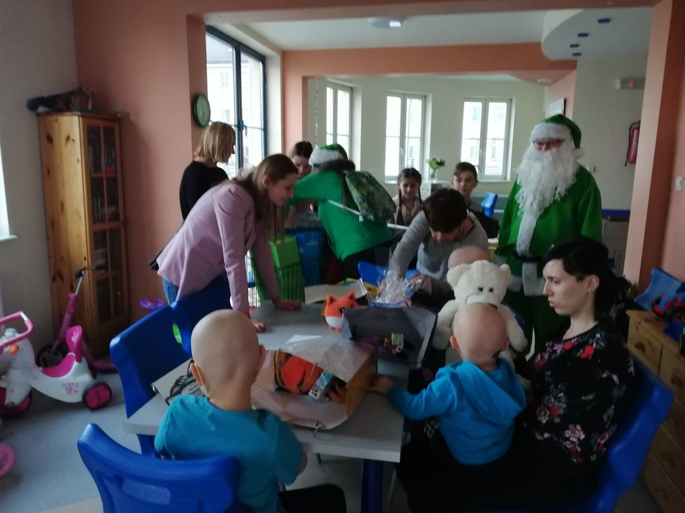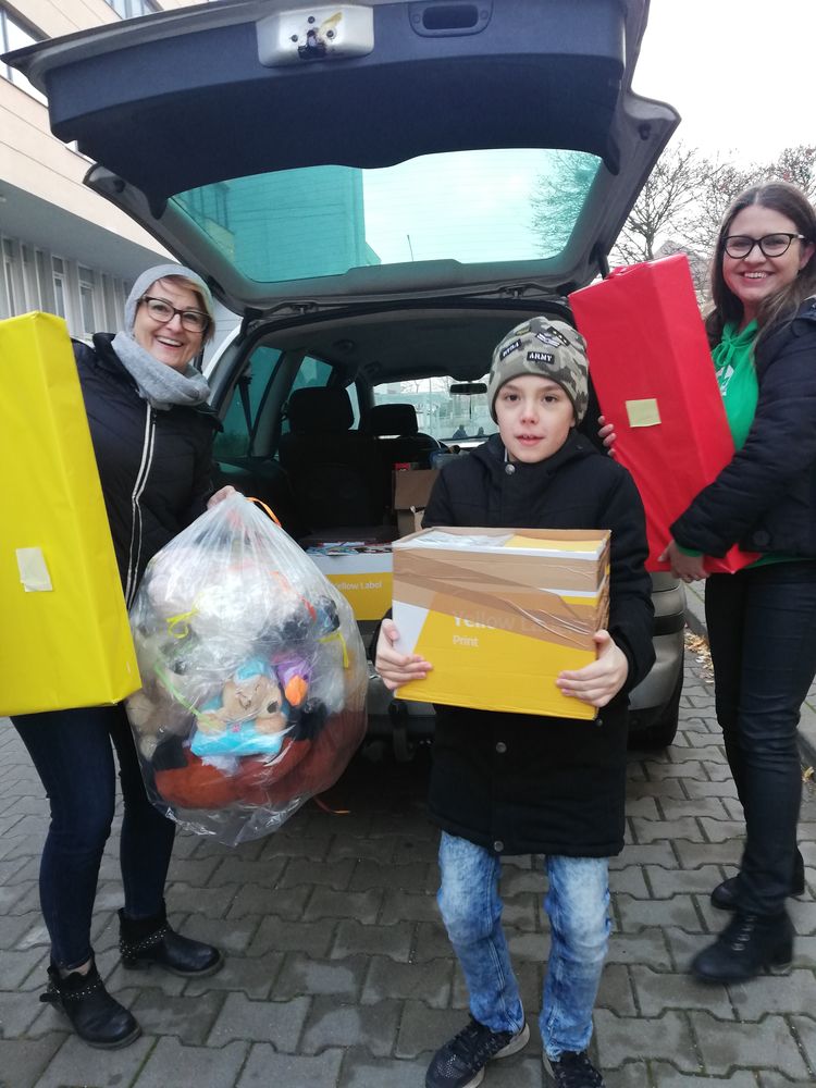 Dnia 25.11.2018r. szkolni koordynatorzy akcji zbiórki pieniędzy i zabawek z wolontariuszami dostarczyli wszystkie zebrane w naszej szkole dary na oddział onkologii oraz hematologii dziecięcej Samodzielnego Publicznego Szpitala Klinicznego Nr 1 PUM im. prof. Tadeusza Sokołowskiego w Szczecinie (Klinika Pediatrii, Hematologii i Onkologii Dziecięcej Pomorskiej Akademii Medycznej). Klinika jest jedynym na terenie woj. zachodniopomorskiego ośrodkiem prowadzącym diagnostykę i leczenie schorzeń układu krwiotwórczego i chorób nowotworowych u dzieci. To z tego szpitala pochodzi większość małych Marzycieli. Na uwagę zasługuje fakt, iż kupione i zebrane podarunki wypełniły szczelnie siedmioosobowego vana! Spełnione zostały marzenia małych pacjentów, ponieważ za zebrane pieniądze zakupiona została m. in. hulajnoga, trójkołowy rowerek i interaktywna mapa Polski. Przywiezione prezenty wywołały radość na twarzach chorych dzieci oraz wdzięczność ich rodziców. Wiele emocji wzbudzał towarzyszący wolontariuszom ubrany na zielono Mikołaj. Zielony to przecież kolor nadziei! Część rzeczy przekazana będzie 8 grudnia w ramach Mikołajek na oddziałach dziecięcych szpitala na szczecińskich Zdrojach. Serdecznie dziękujemy całej społeczności szkolnej oraz lokalnej za okazane serce i za włączenie się w zbiórkę. Wspólnie udało nam się kupić i zebrać duuuuuużą ilość maskotek, gier, książek, kredek, gier itd. Wszystkim zaangażowanym w organizację i upowszechnienie wydarzenia serdecznie dziękujemy i wierzymy, że wspólnie udało nam się wywołać radość na twarzach małych Marzycieli oraz ich rodziców. Miło jest uszczęśliwiać dzieci!!!