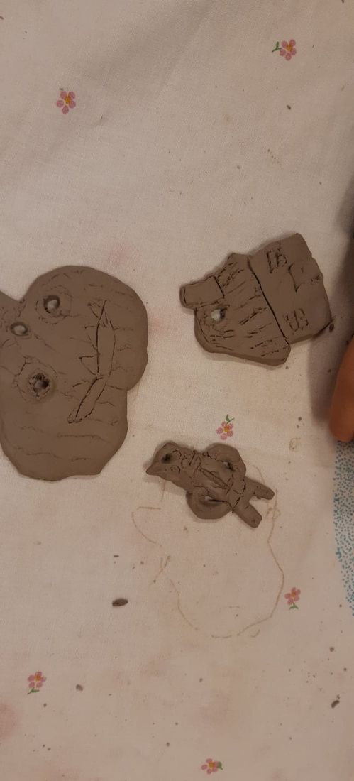 Uczestnicy warsztatów z wielkim zaangażowaniem wykonywali, choinki, domki, dynie, duszki i inne zawieszki. Za miesiąc dostaniemy wypalone w specjalnym piecu nasze prace, które następnie pomalujemy.